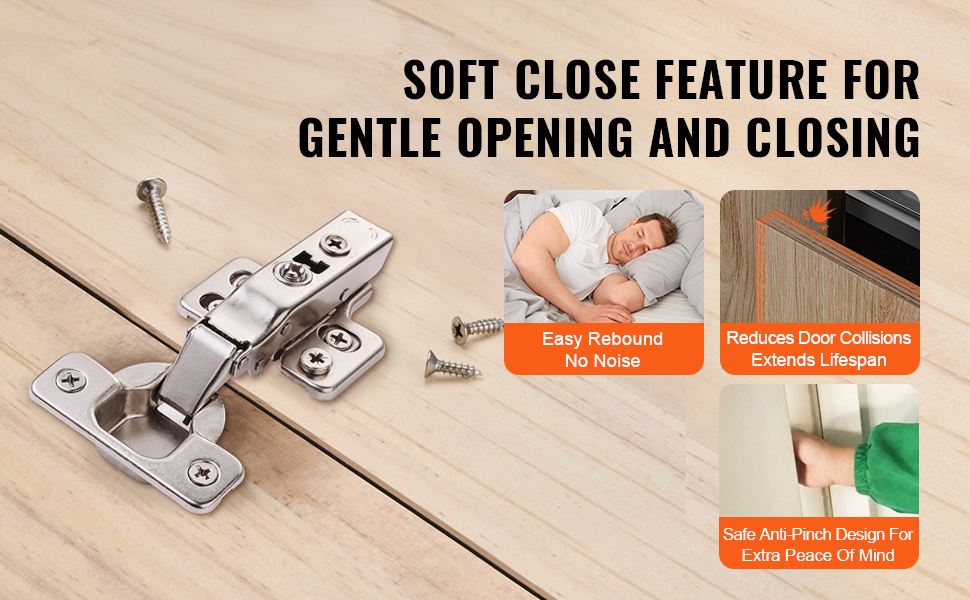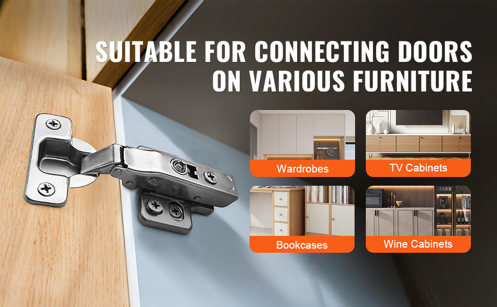 Naše skrinkové pánty sú široko prispôsobené pre všetky druhy dvierok skriniek. Zabudovaný tichý tlmič účinne znižuje hluk pri zatváraní dvierok a chráni skrinku pred nárazmi. Vysokokvalitná nehrdzavejúca oceľ, ktorá zaručuje odolnosť a dlhú životnosť pántov vo vlhkom prostredí.