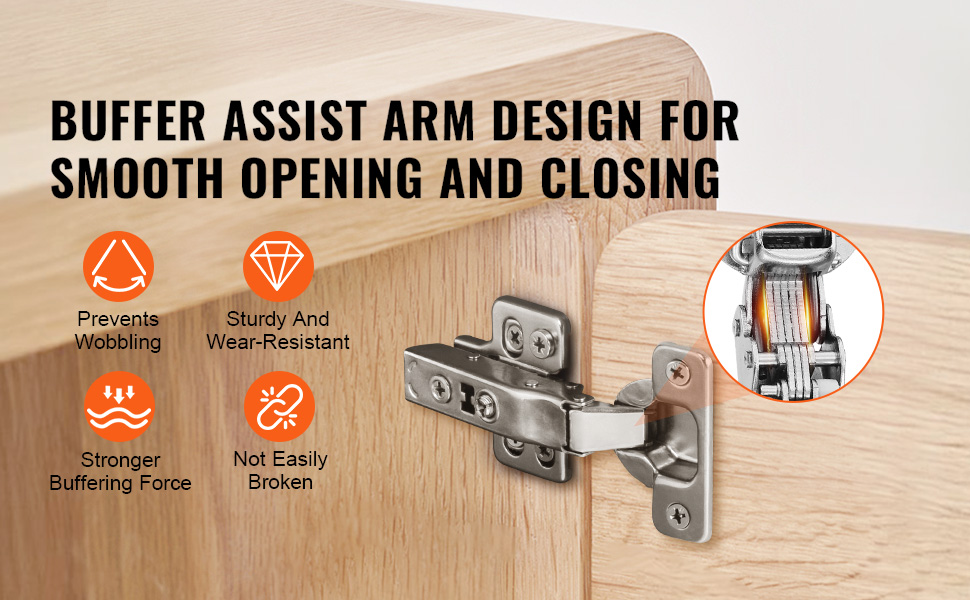 Konštrukcia tlmiaceho ramena zabezpečuje hladké otváranie a zatváranie dverí skrine, účinne odoláva otrasom a výber vysokopevnostnej nehrdzavejúcej ocele zvyšuje tlmiaci výkon, je odolnejší a znižuje riziko zlomenia.