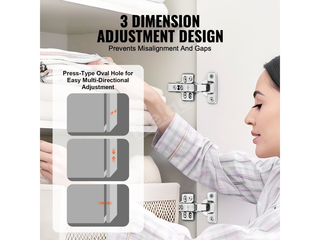 Naše skrinkové pánty sú široko prispôsobené pre všetky druhy dvierok skriniek. Zabudovaný tichý tlmič účinne znižuje hluk pri zatváraní dvierok a chráni skrinku pred nárazmi. Vysokokvalitná nehrdzavejúca oceľ, ktorá zaručuje odolnosť a dlhú životnosť pántov vo vlhkom prostredí.