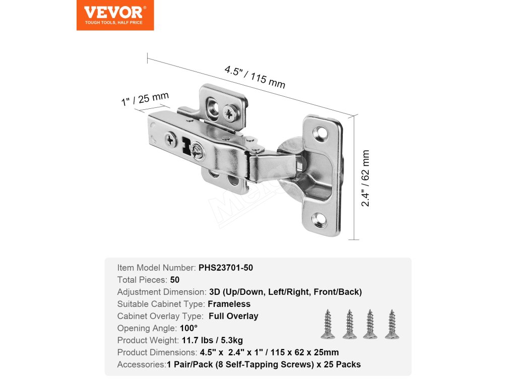 Pánty do bezrámových skríň 50 ks, tlmené dovieranie, 100° otvorenie