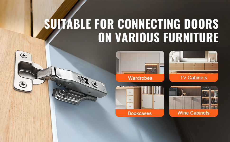Naše skrinkové pánty sú široko prispôsobené pre všetky druhy dvierok skriniek. Zabudovaný tichý tlmič účinne znižuje hluk pri zatváraní dvierok a chráni skrinku pred nárazmi. Vysokokvalitná nehrdzavejúca oceľ, ktorá zaručuje, že pánty sú odolné a majú dlhú životnosť vo vlhkom prostredí.