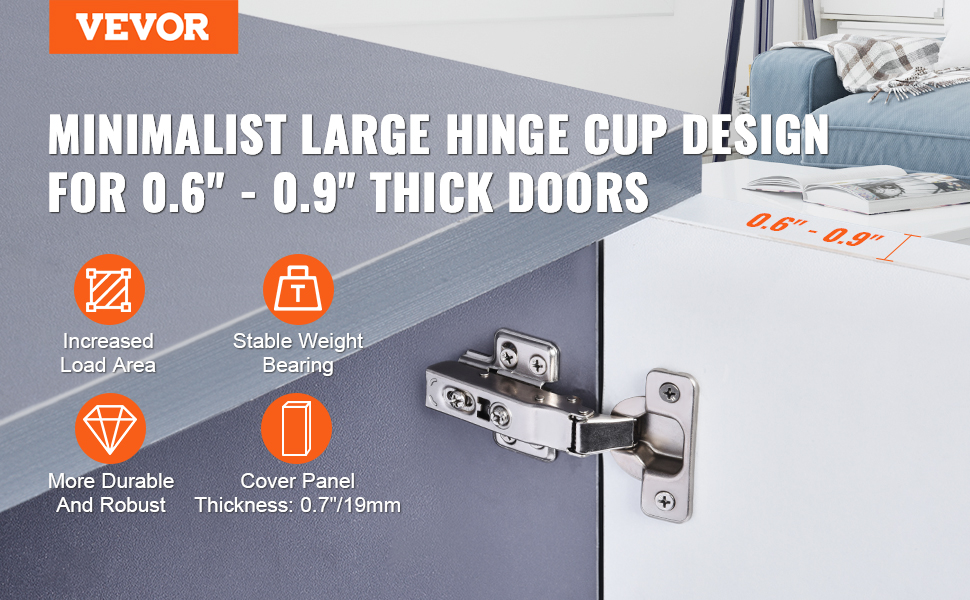 Minimalistická konštrukcia s veľkým kalichom závesu, ktorá účinne zväčšuje silovú plochu, aby sa zabezpečila stabilita pri zaťažení, dokonca aj pri hrúbke dvernej dosky 0,6"-0,9" môže byť stabilná a odolná, dlhodobé používanie bez deformácie.