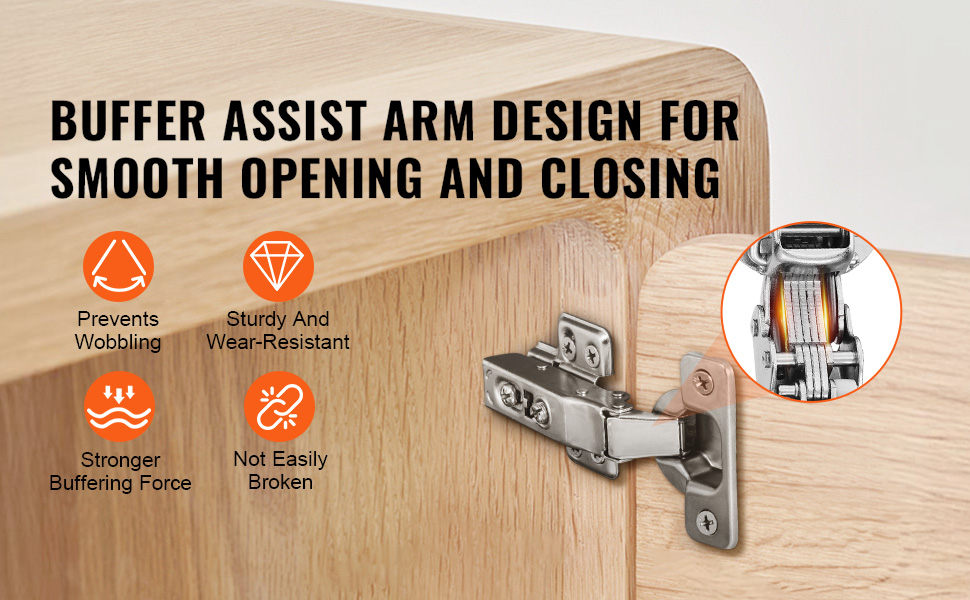 Konštrukcia tlmiaceho ramena zabezpečuje hladké otváranie a zatváranie dverí skrine, účinne odoláva otrasom a výber vysokopevnostnej nehrdzavejúcej ocele zvyšuje tlmiaci výkon, je odolnejší a znižuje riziko zlomenia.
