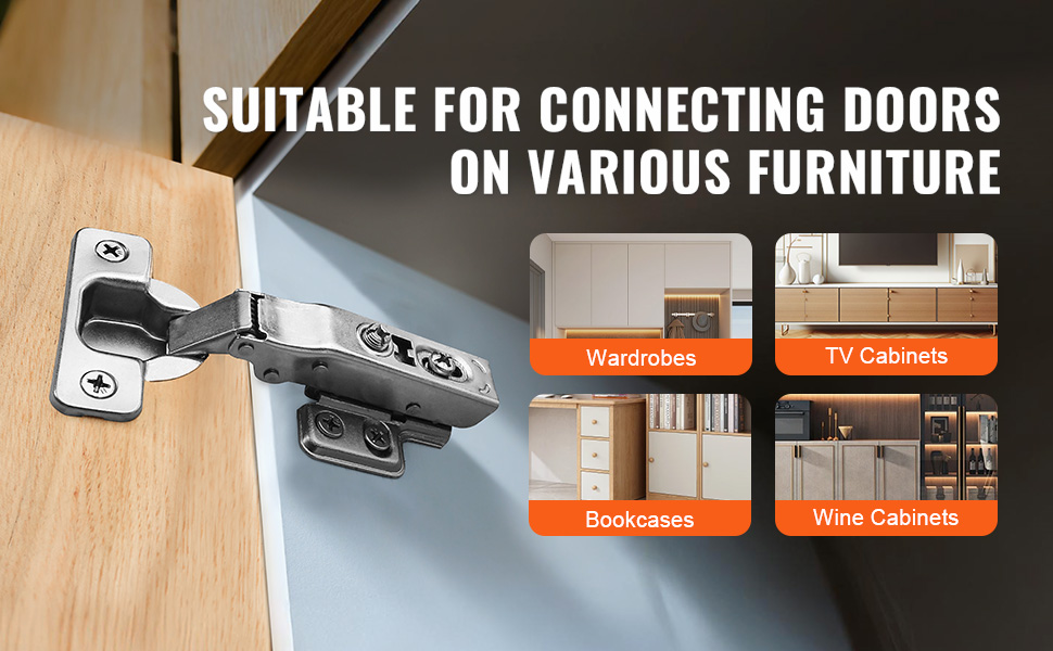 Naše skrinkové pánty sú široko prispôsobené pre všetky druhy dvierok skriniek. Zabudovaný tichý tlmič účinne znižuje hluk pri zatváraní dvierok a chráni skrinku pred nárazmi. Vysokokvalitná nehrdzavejúca oceľ, ktorá zaručuje odolnosť a dlhú životnosť pántov vo vlhkom prostredí.