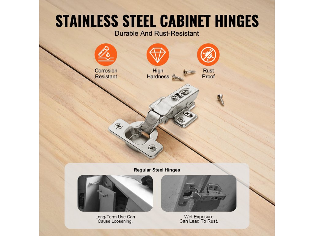 Naše skrinkové pánty sú široko prispôsobené pre všetky druhy dvierok skriniek. Zabudovaný tichý tlmič účinne znižuje hluk pri zatváraní dvierok a chráni skrinku pred nárazmi. Vysokokvalitná nehrdzavejúca oceľ, ktorá zaručuje odolnosť a dlhú životnosť pántov vo vlhkom prostredí.