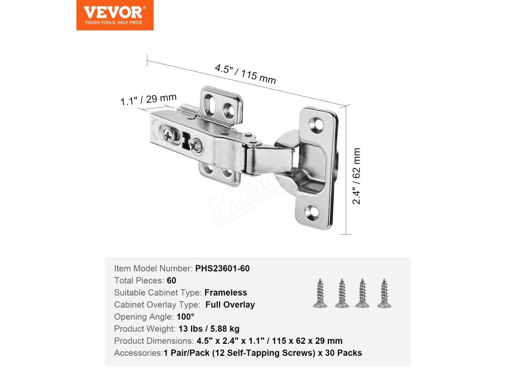 Pánty na kuchynské skrinky 60 ks, kalíškové, 100°, s tlmením