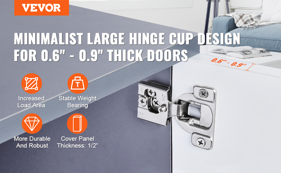 Minimalistická konštrukcia s veľkým kalichom závesu, ktorá účinne zväčšuje silovú plochu, aby sa zabezpečila stabilita pri zaťažení, dokonca aj pri hrúbke dvernej dosky 0,6"-0,9" môže byť stabilná a odolná, dlhodobé používanie bez deformácie.