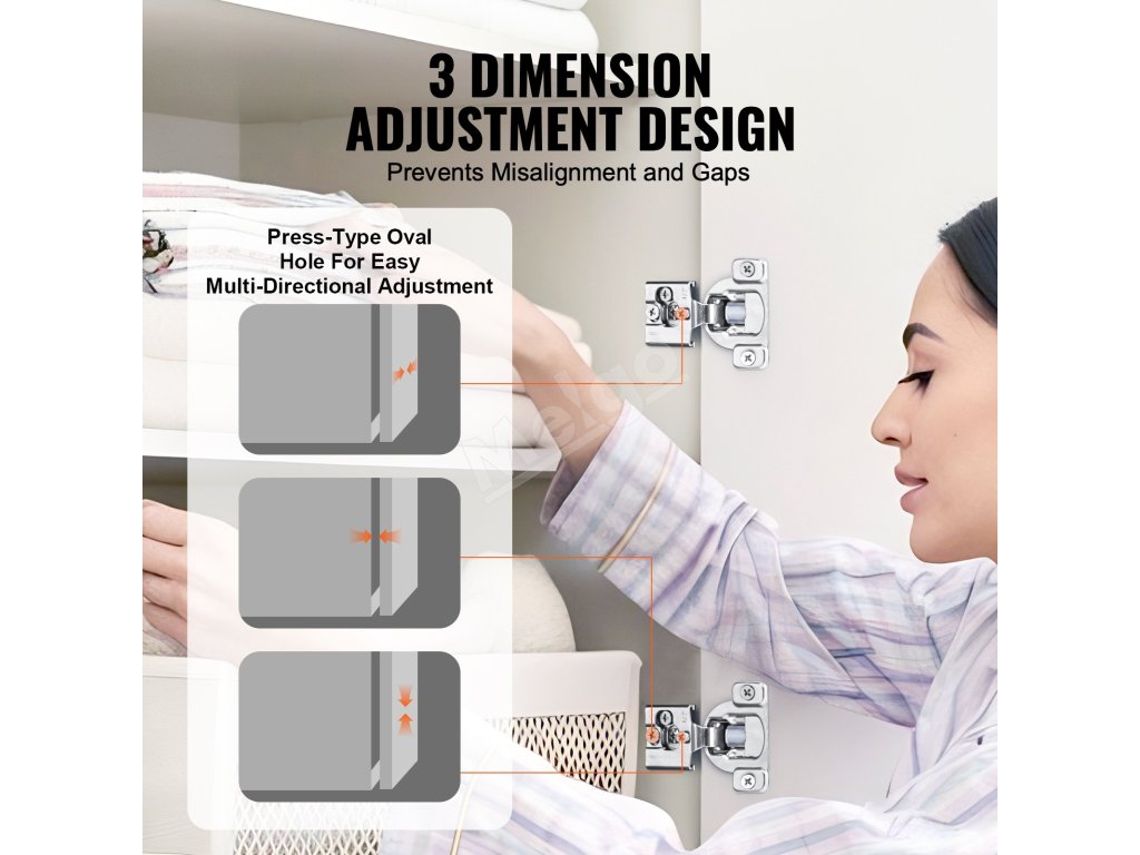 Naše skrinkové pánty sú široko prispôsobené pre všetky druhy dvierok skriniek. Zabudovaný tichý tlmič účinne znižuje hluk pri zatváraní dvierok a chráni skrinku pred nárazmi. Vysokokvalitná nehrdzavejúca oceľ, ktorá zaručuje odolnosť a dlhú životnosť pántov vo vlhkom prostredí.