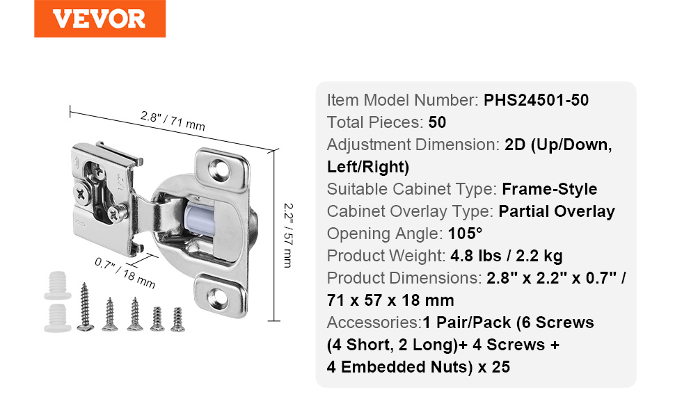 Skryté závesy 50ks, čiastočné prekrytie, 105°, s tlmením, so skrutkami
