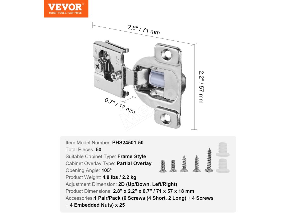 Skryté závesy 50ks, čiastočné prekrytie, 105°, s tlmením, so skrutkami