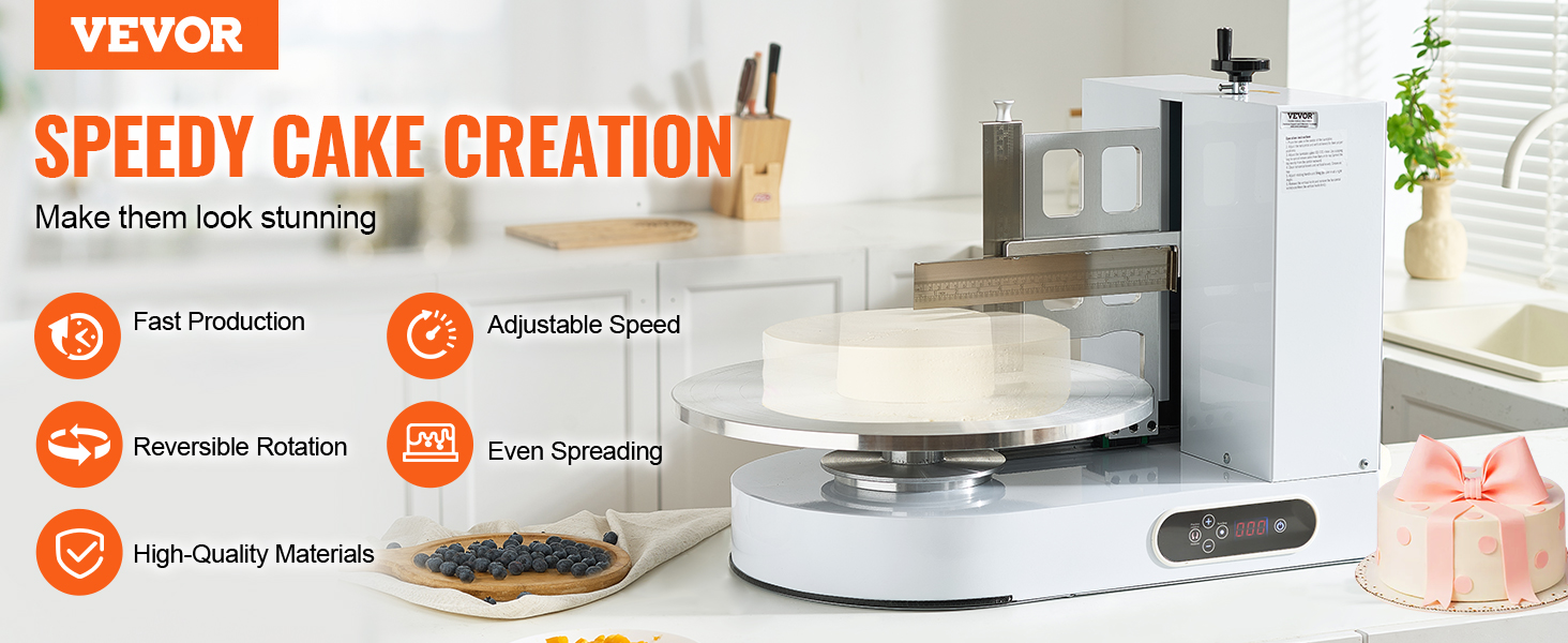 S týmto strojom na zdobenie tort premeníte svoje skúsenosti s pečením. Vďaka rýchlemu a presnému rozotieraniu môže byť zdobenie torty hračkou. Je pripravený na to, aby ste mohli vytvárať nádherné torty špičkového štandardu. Stroj sa tiež ľahko čistí a nezanecháva žiadne zvyšky, čo výrazne zvyšuje efektivitu.