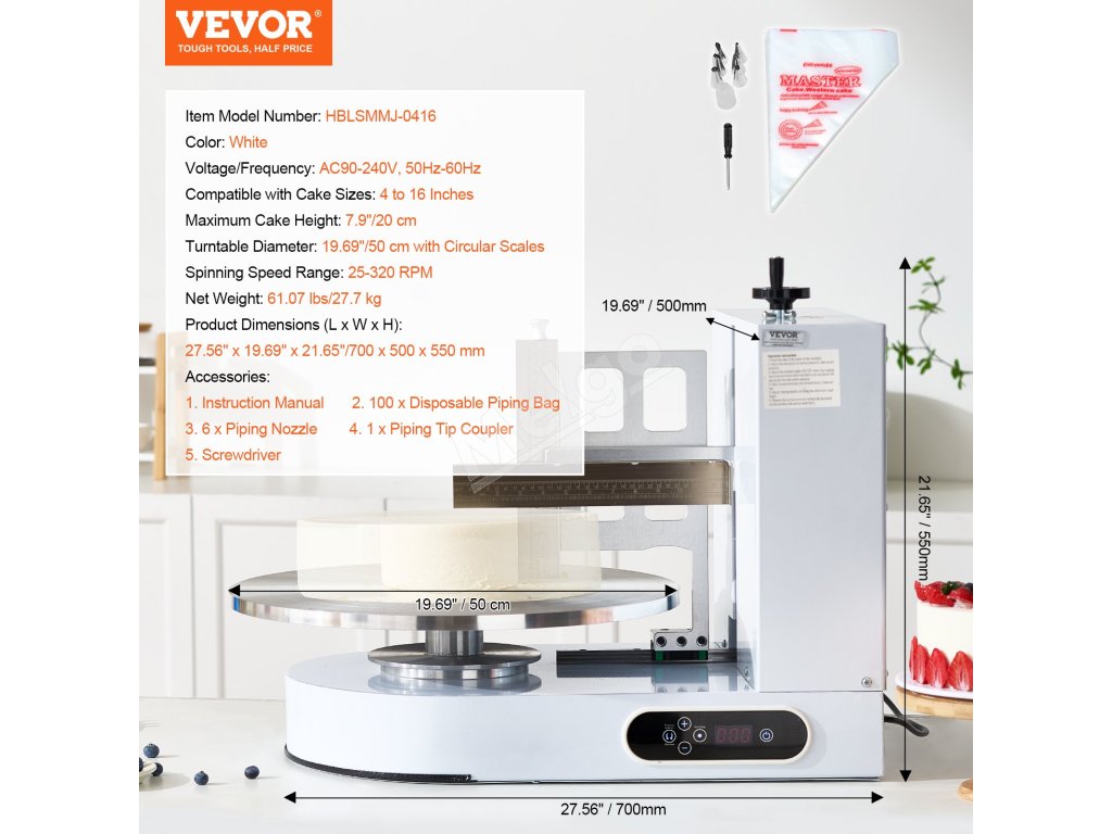 S týmto strojom na zdobenie tort premeníte svoje skúsenosti s pečením. Vďaka rýchlemu a presnému rozotieraniu môže byť zdobenie torty hračkou. Je pripravený na to, aby ste mohli vytvárať nádherné torty špičkového štandardu. Stroj sa tiež ľahko čistí a nezanecháva žiadne zvyšky, čo výrazne zvyšuje efektivitu.