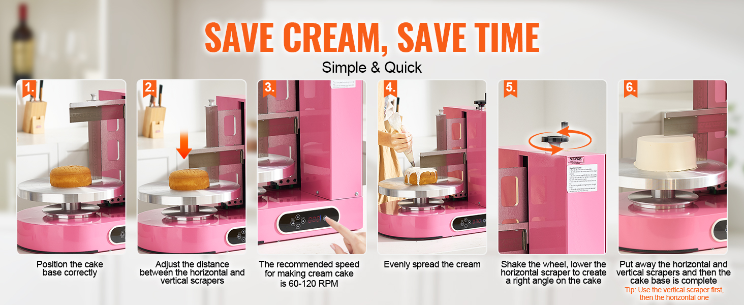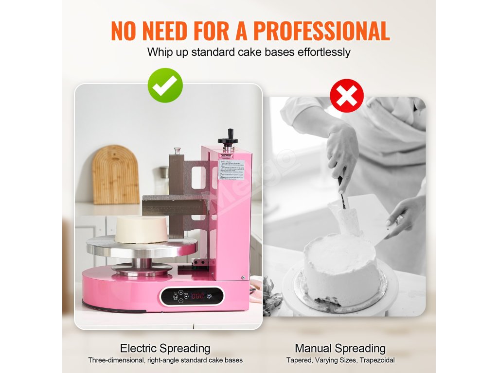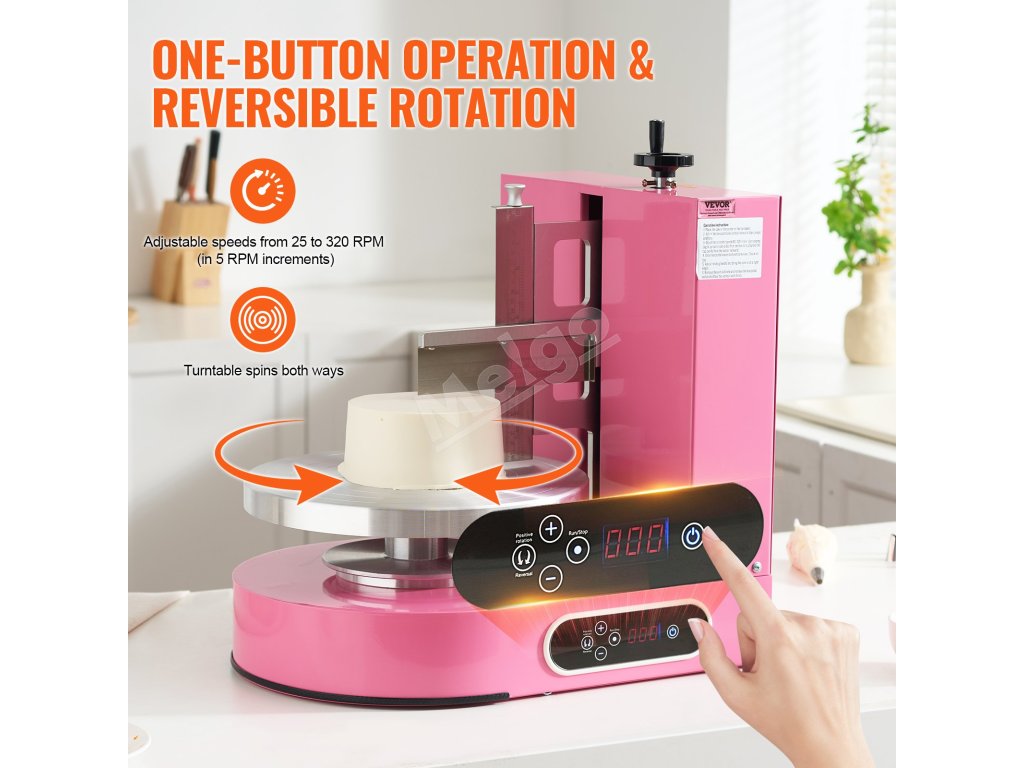 S týmto strojom na zdobenie tort premeníte svoje skúsenosti s pečením. Vďaka rýchlemu a presnému rozotieraniu môže byť zdobenie torty hračkou. Je pripravený na to, aby ste mohli vytvárať nádherné torty špičkového štandardu. Stroj sa tiež ľahko čistí a nezanecháva žiadne zvyšky, čo výrazne zvyšuje efektivitu.