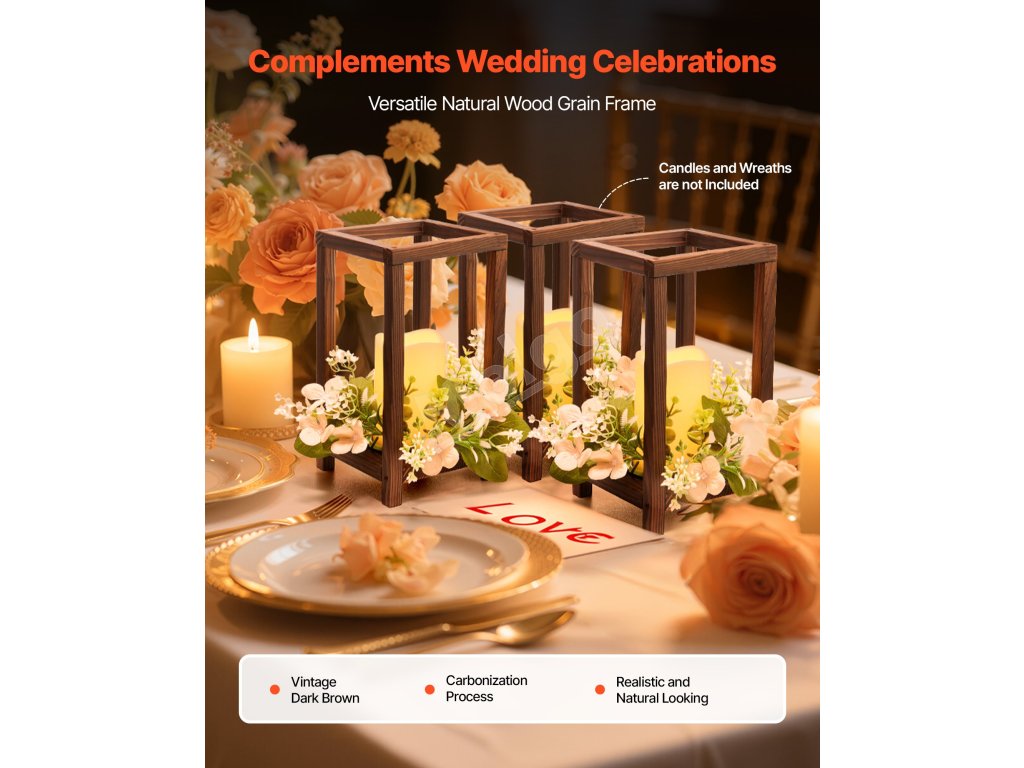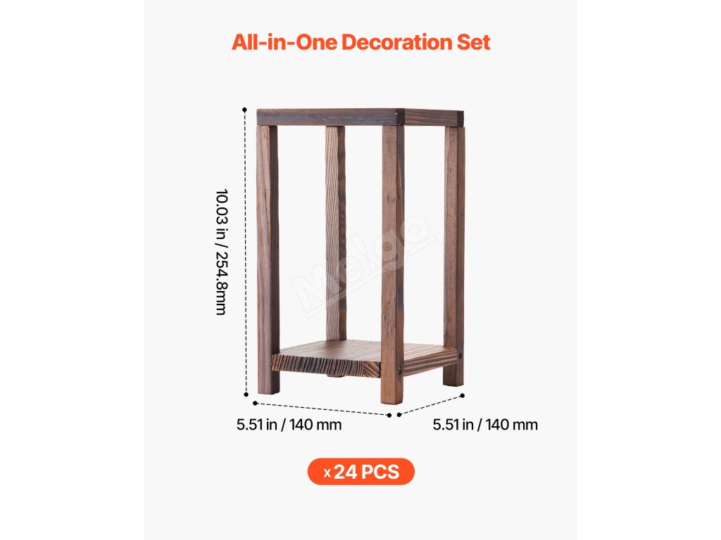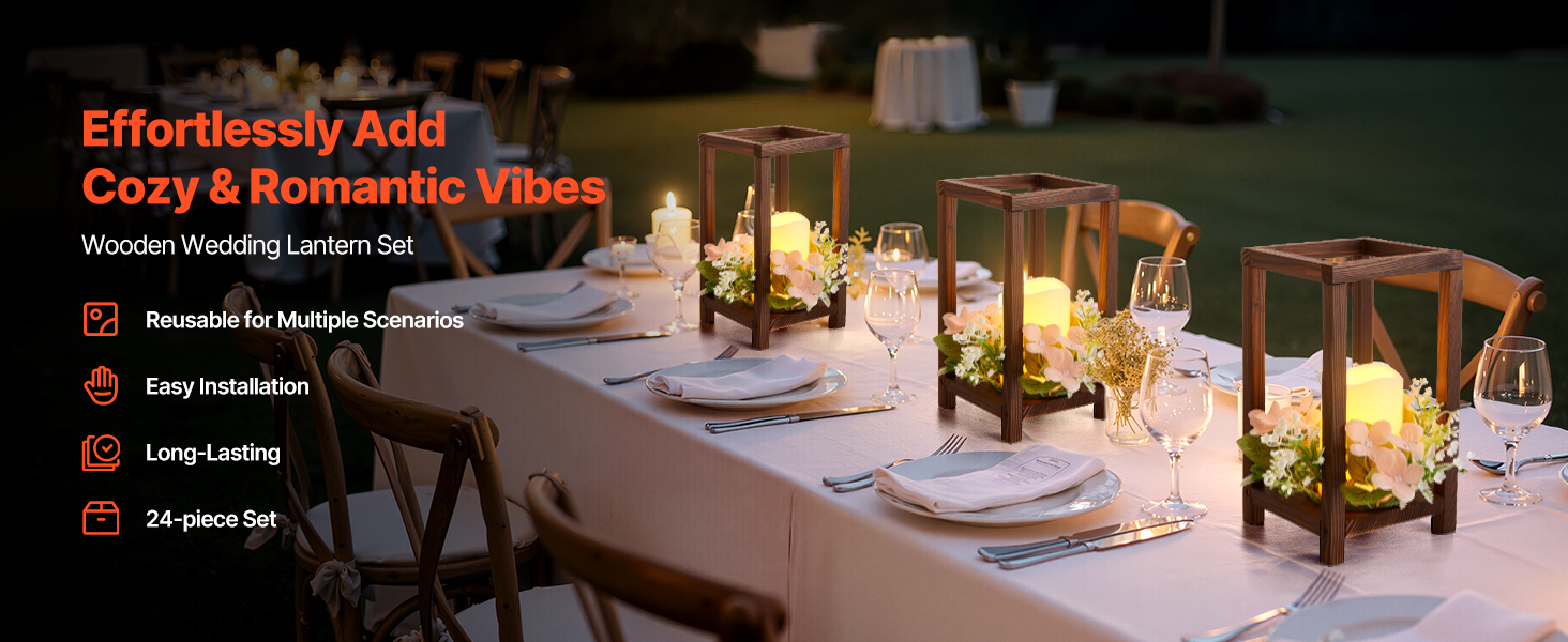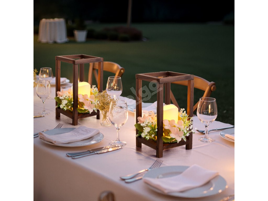 Drevený svadobný lampáš poskytuje všetko, čo potrebujete, v jednej sade. Obsahuje 24 dekoratívnych dielov v kombinácii, ktorá umožňuje pohodlnú inštaláciu. Vďaka bezplameňovému dizajnu pre bezpečnosť je vhodný na opakované použitie v rôznych scenároch, ako sú svadby a festivaly.