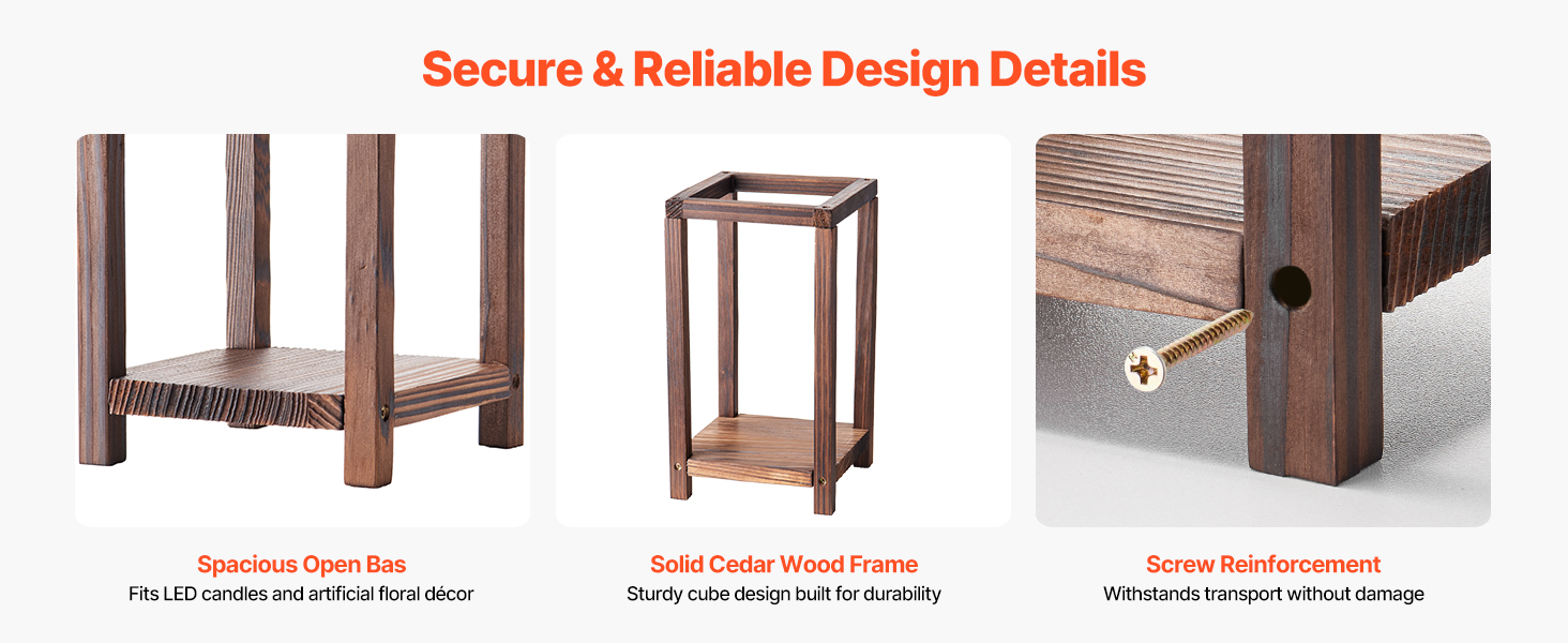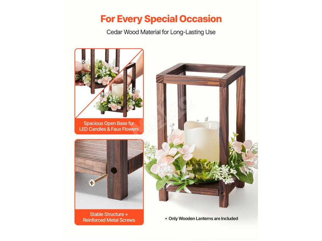 Náš drevený lampáš využíva masívne cédrové drevo so zosilnenými skrutkami, aby vydržalo nárazy pri preprave, v spojení s jemným umelým vencom zo šampanského na dodanie šarmu. Je vybavený bezplameňovými sviečkami LED a poskytuje spoľahlivé použitie pre interiérové scenáre.