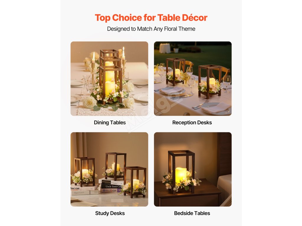 Okrem svadobnej výzdoby možno tento centrálny lampáš opakovane použiť na slávnosti, ako sú Vianoce, Valentín a Halloween. Jeden nákup podporuje cyklické používanie vo viacerých scenároch. Je šetrný k okoliu a zároveň praktický a atmosférický.