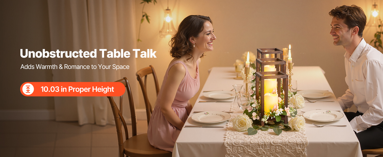 S výškou len 5,51 palca sú tieto drevené lampáše vhodné na umiestnenie doprostred jedálenského stola bez toho, aby blokovali výhľad. Ľahko vytvoria hrejivú a interaktívnu atmosféru a obohatia každé stretnutie o útulnú, romantickú atmosféru.