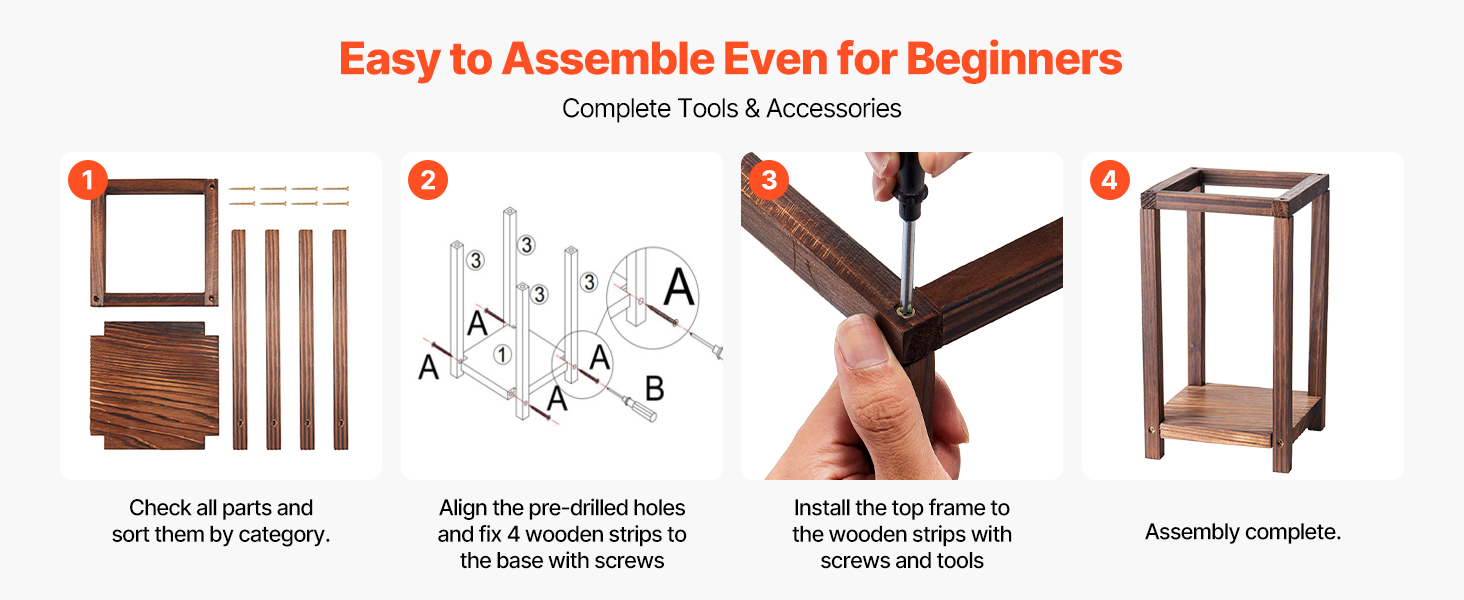 Tieto drevené lampáše sa dodávajú s príslušnými skrutkami, nástrojmi a podrobným ilustrovaným návodom na použitie. Proces inštalácie je jasný a jednoduchý bez potreby ďalších nástrojov. Dokončenie montáže a usporiadanie lampáša zvládnu bez problémov aj začiatočníci.