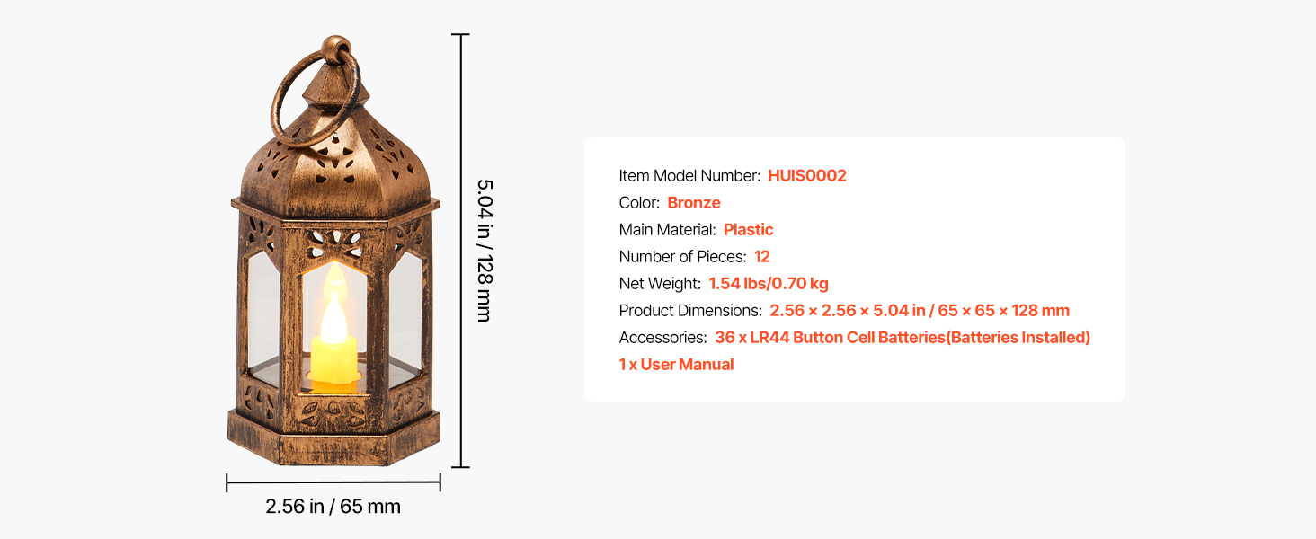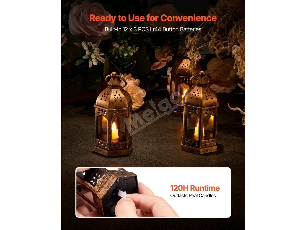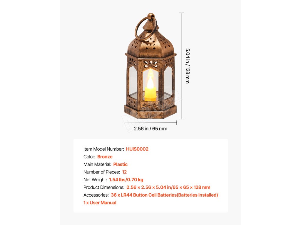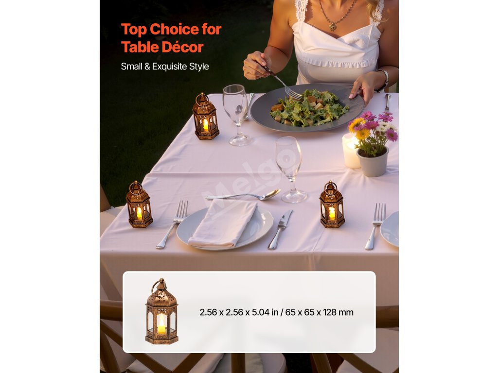 12-dielna súprava elektrických lampášov na sviečky vytvára realistickú žiaru plameňa bez nebezpečenstva požiaru. Je vhodná na svadobné stoly, sviatočné večierky a domáce dekorácie, ktorým dodá hrejivú a romantickú atmosféru pri akejkoľvek príležitosti.