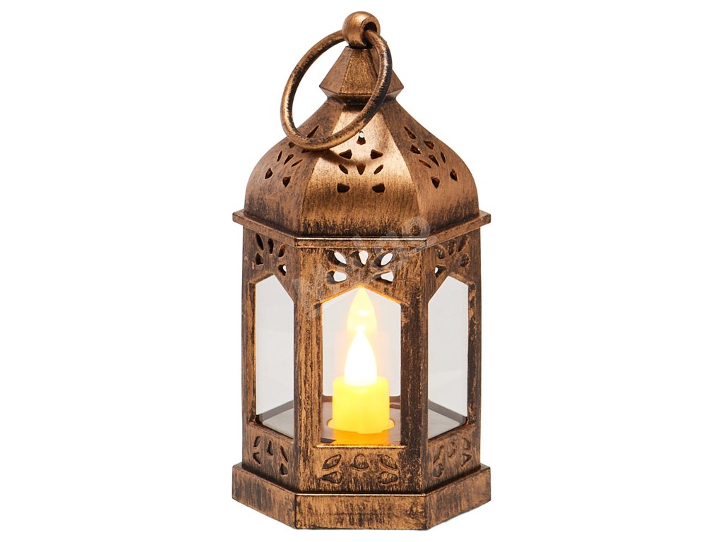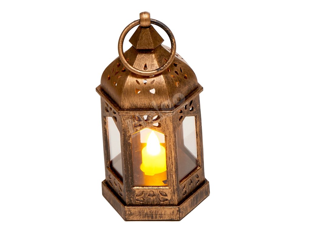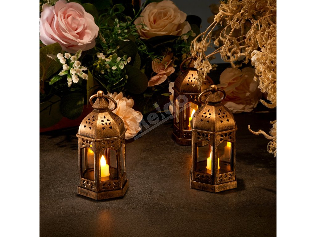 Sada 12 bezplameňových led lampášikov na zavesenie s sklom, bronz