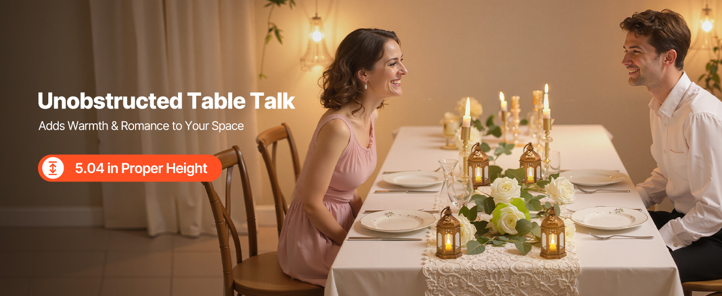 Vďaka výške len 5,04 palca (128 mm) sa tieto dekoratívne lampáše dobre hodia na jedálenské stoly bez toho, aby blokovali výhľad. Vytvárajú hrejivú, romantickú atmosféru, vďaka ktorej je každé stretnutie intímnejšie a romantickejšie.
