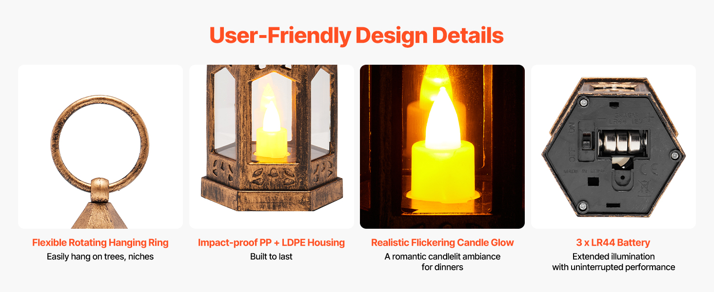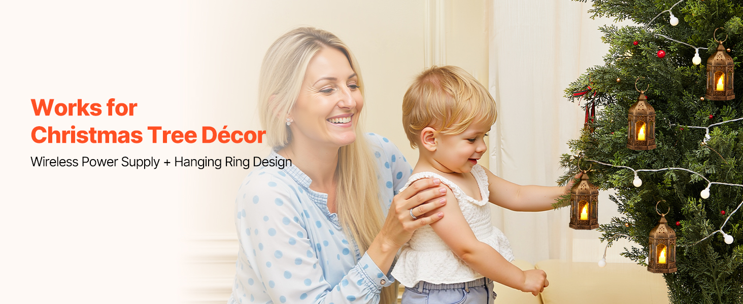 Nie sú potrebné žiadne káble ani zásuvky. Tieto verandové dekoratívne vonkajšie lampáše sa dodávajú so závesným krúžkom na okamžité použitie a sú určené na zdobenie vianočných stromčekov a slávnostných scén. Užívajte si bezpečné a teplé osvetlenie a zároveň vytvárajte zábavné spomienky s rodinou.