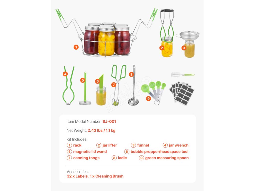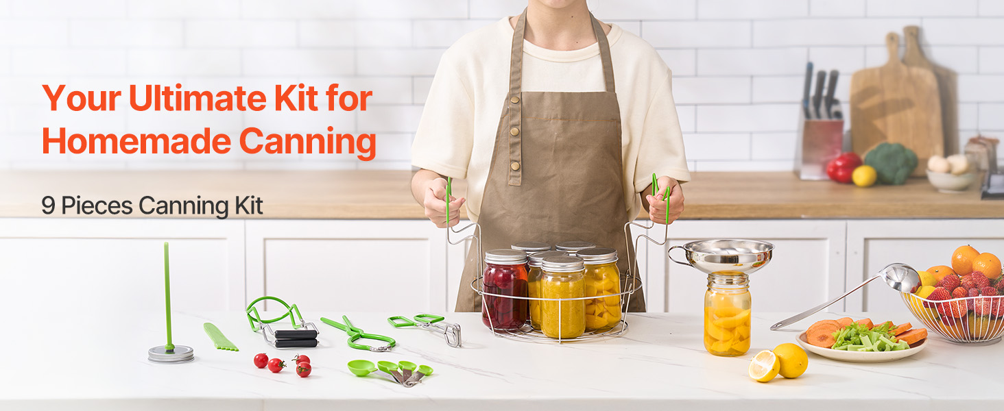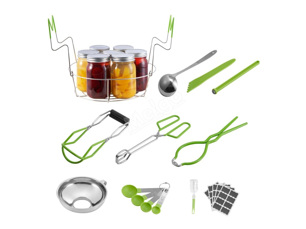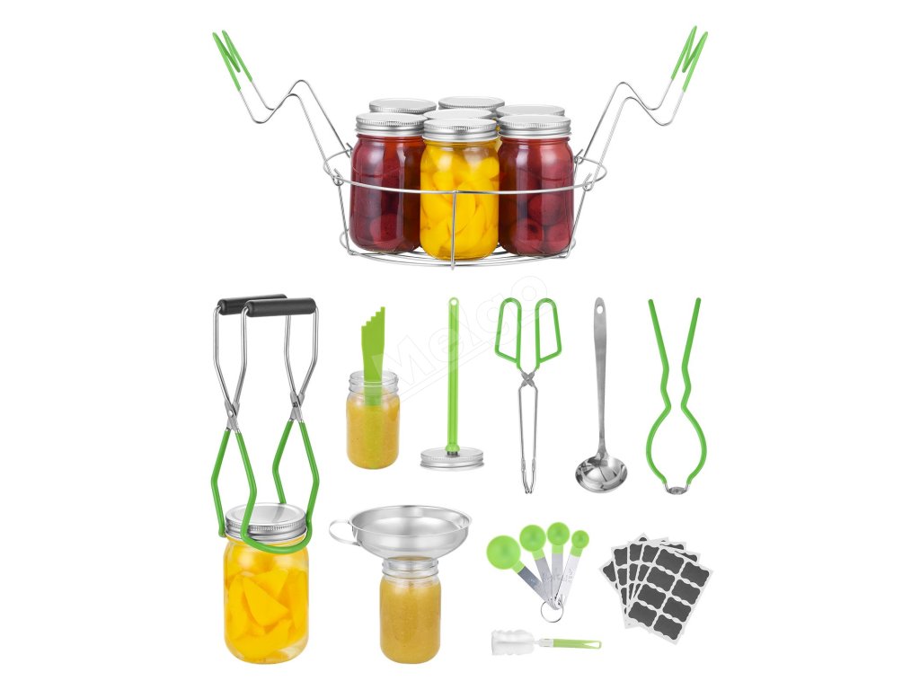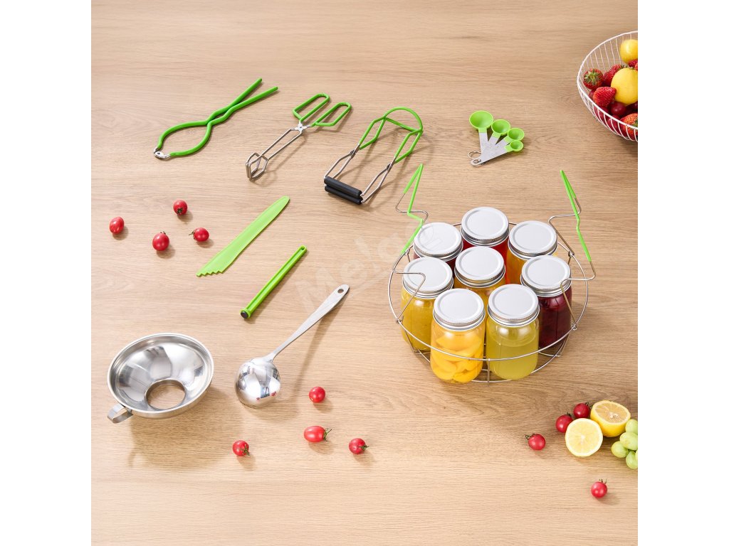 Naša štartovacia súprava konzervárenských potrieb obsahuje kompletné základné nástroje, ako je kľúč na zaváraninové poháre, zdvihák na poháre a ďalšie praktické predmety, ktoré uspokoja všetky vaše domáce potreby pri konzervovaní. Štartovacia súprava je ideálna pre začiatočníkov aj skúsených domácich kuchárov.