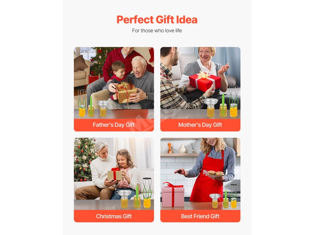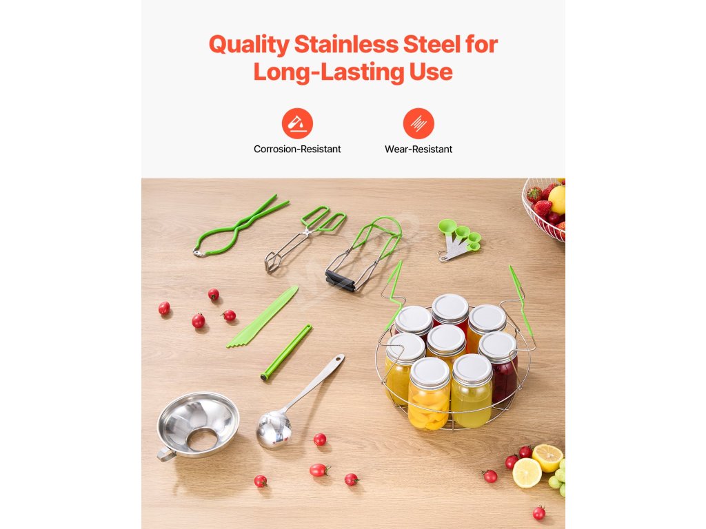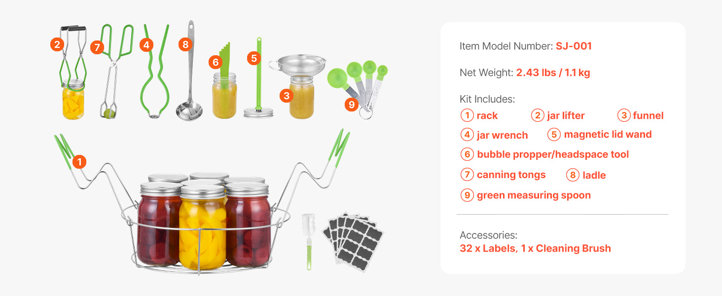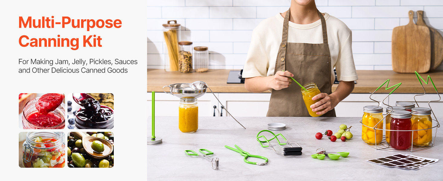 Naša štartovacia súprava konzervárenských potrieb obsahuje kompletné základné nástroje, ako je kľúč na zaváraninové poháre, zdvihák na poháre a ďalšie praktické predmety, ktoré uspokoja všetky vaše domáce potreby pri konzervovaní. Štartovacia súprava je ideálna pre začiatočníkov aj skúsených domácich kuchárov.