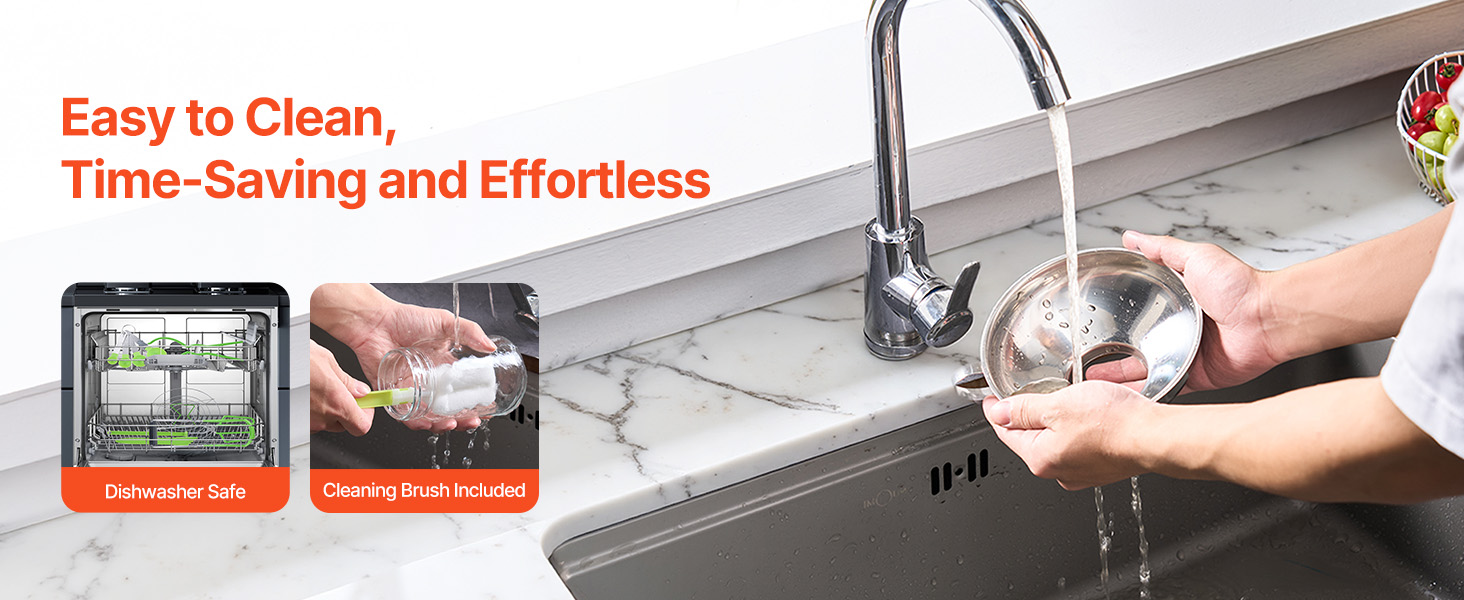 Táto súprava na konzervovanie sa ľahko čistí a udržiava a pomáha predchádzať korózii alebo poškodeniu spôsobenému škvrnami od potravín a nečistotami. Je ľahké udržiavať vaše potreby na konzervovanie vždy čisté.