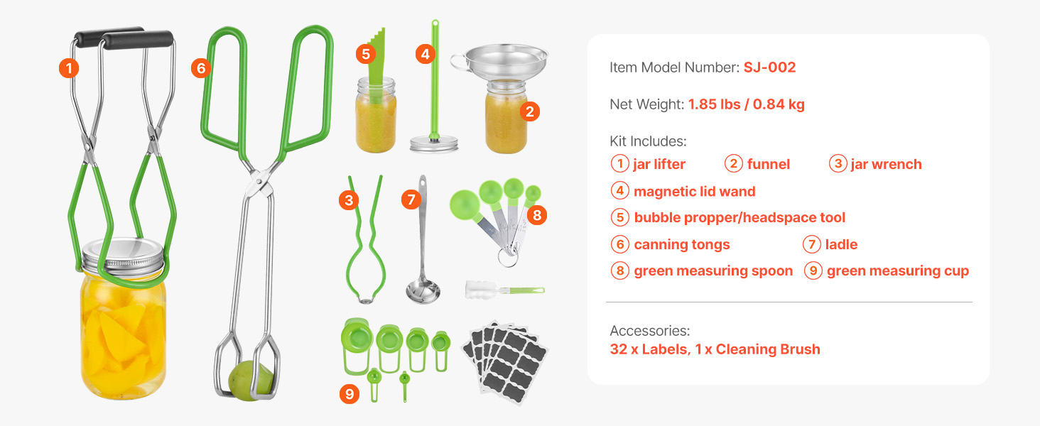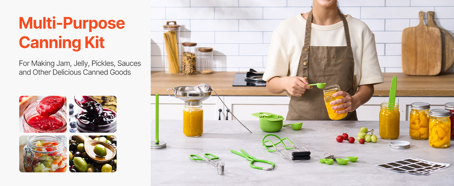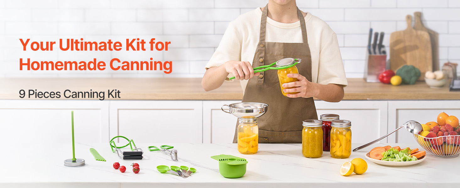 Naša štartovacia súprava konzervárenských potrieb obsahuje kompletné základné nástroje, ako je kľúč na zaváraninové poháre, zdvihák na poháre a ďalšie praktické predmety, ktoré uspokoja všetky vaše domáce potreby pri konzervovaní. Štartovacia súprava je ideálna pre začiatočníkov aj skúsených domácich kuchárov.