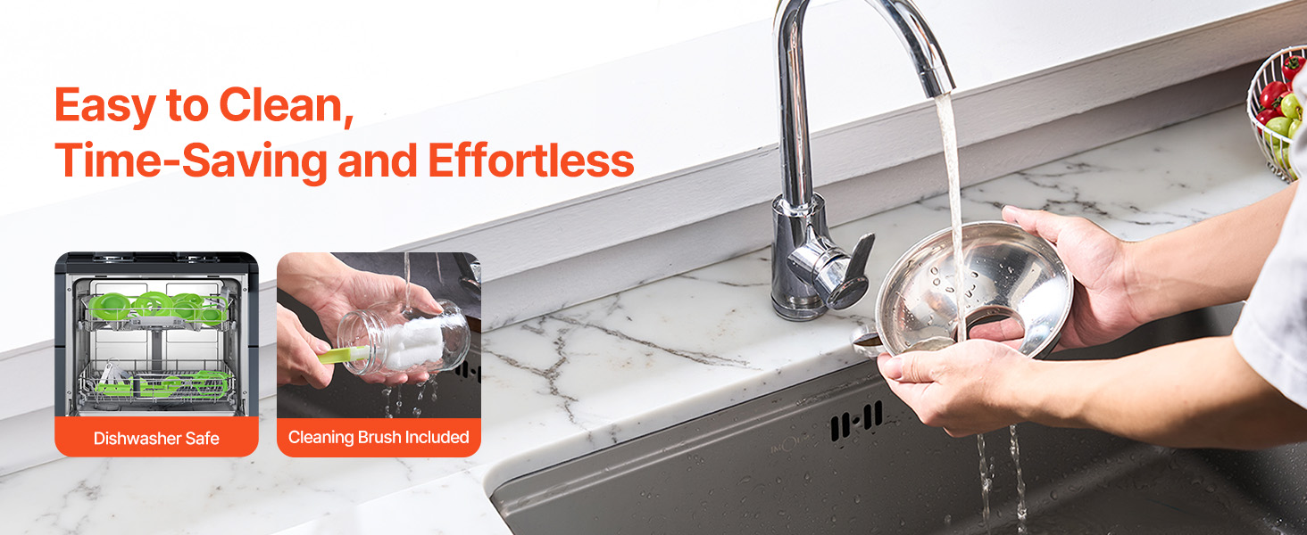 Táto súprava na konzervovanie sa ľahko čistí a udržiava a pomáha predchádzať korózii alebo poškodeniu spôsobenému škvrnami od potravín a nečistotami. Je ľahké udržiavať vaše potreby na konzervovanie vždy čisté.