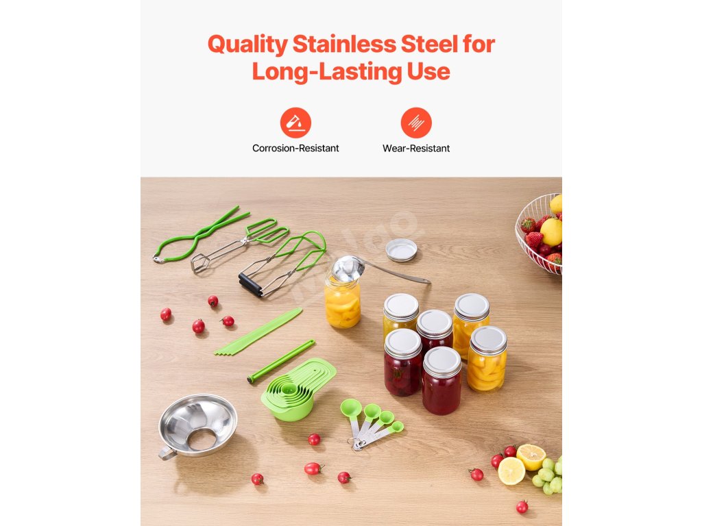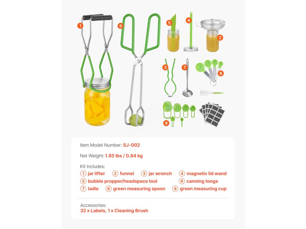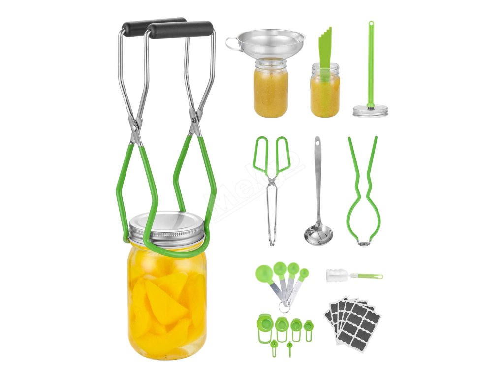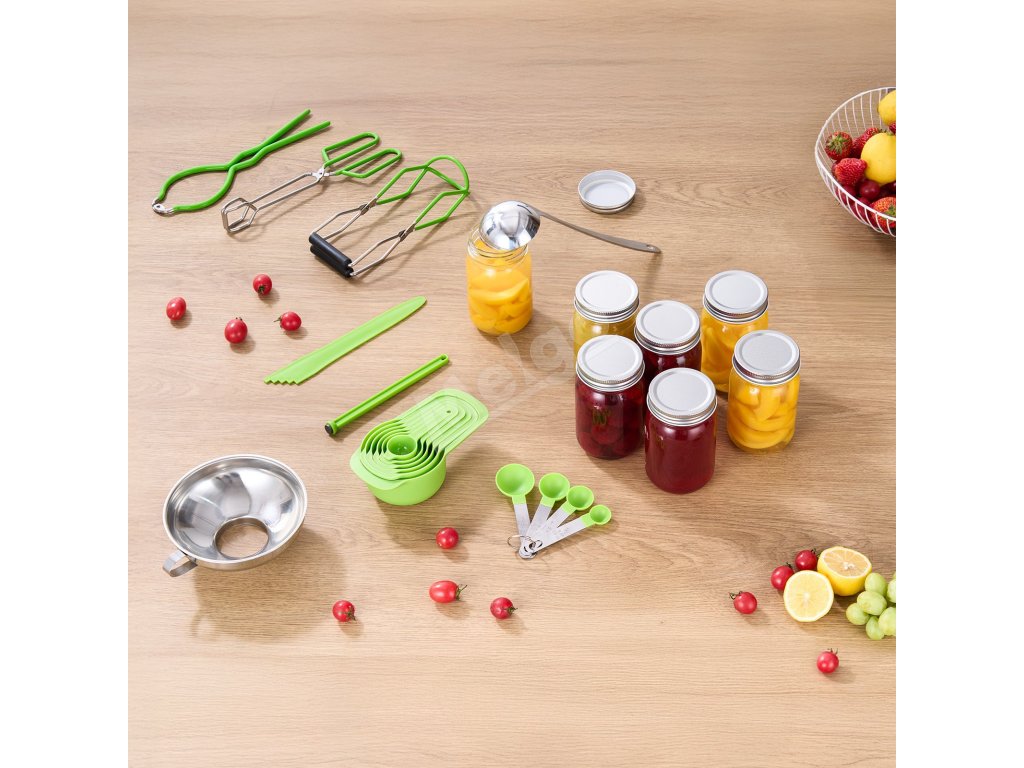 Naša štartovacia súprava konzervárenských potrieb obsahuje kompletné základné nástroje, ako je kľúč na zaváraninové poháre, zdvihák na poháre a ďalšie praktické predmety, ktoré uspokoja všetky vaše domáce potreby pri konzervovaní. Štartovacia súprava je ideálna pre začiatočníkov aj skúsených domácich kuchárov.