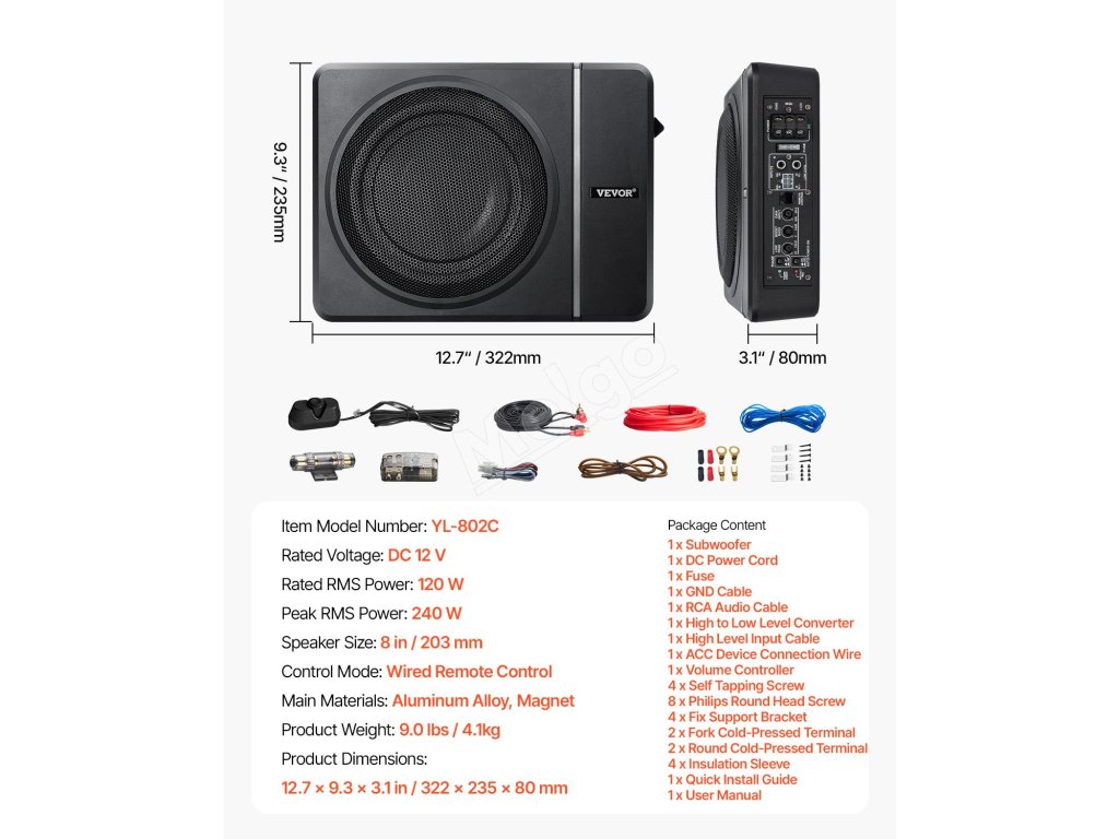 Tento 8" subwoofer do auta pod sedadlo je nevyhnutnou výbavou pre nadšencov automobilového audia, pretože poskytuje silné basy a čistý zvuk a zároveň šetrí miesto vďaka svojmu štíhlemu 3,1" profilu. Je vybavený vstupom pre vysokú/nízku úroveň a maximálnym výkonom 240 W, čím výrazne pozdvihne váš zvukový zážitok na ďalšiu úroveň.