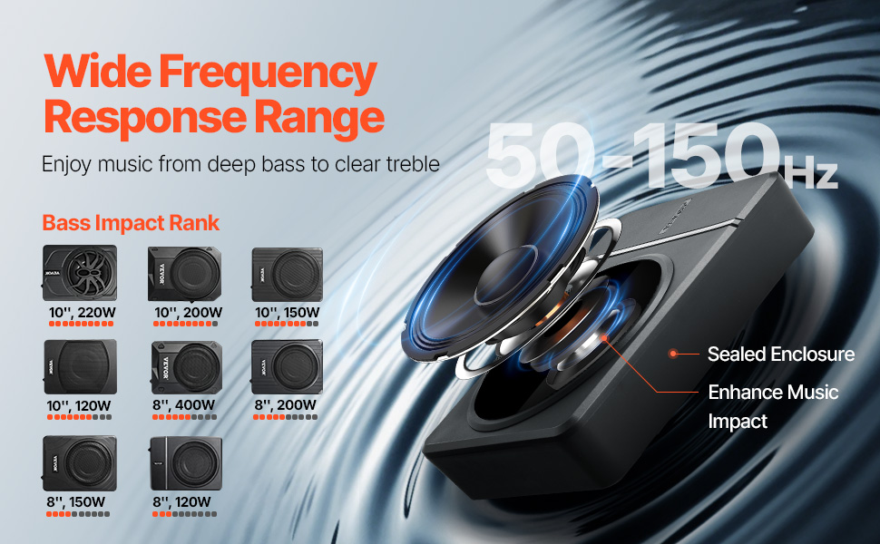 Náš štíhly 8" subwoofer do auta je určený pre milovníkov basov a poskytuje plnohodnotný zvukový zážitok s frekvenčnou odozvou 50-150 Hz. Či už hrá R&B, hip-hop, EDM alebo rock, reproduktor subwoofera vám zakaždým prinesie intenzívny rytmus a bezkonkurenčné basy.