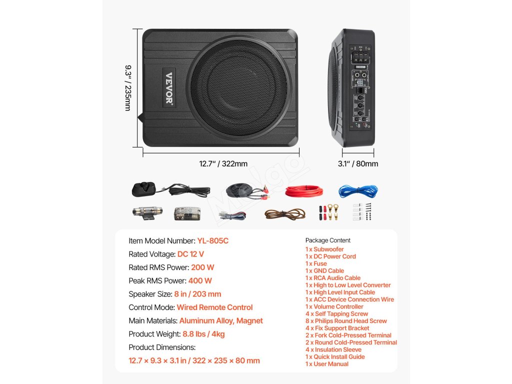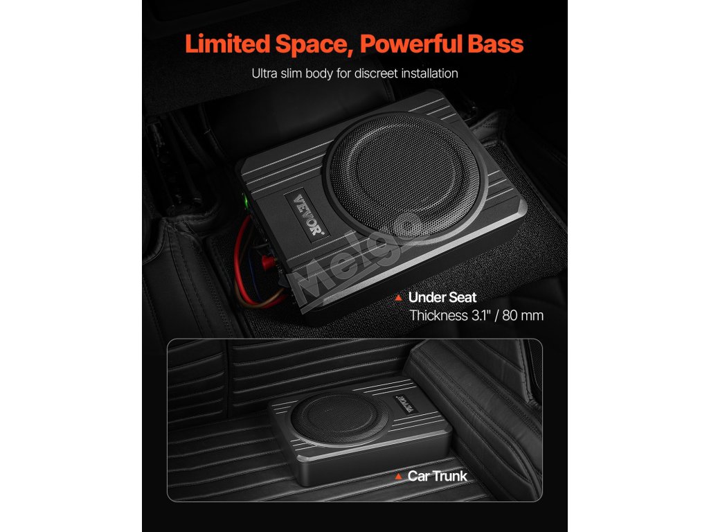 Tento 8" subwoofer do auta pod sedadlo je nevyhnutnou výbavou pre nadšencov automobilového audia, pretože poskytuje silné basy a čistý zvuk a zároveň šetrí miesto vďaka svojmu štíhlemu 3,1" profilu. Je vybavený vstupom pre vysokú/nízku úroveň a maximálnym výkonom 400 W, čím výrazne pozdvihne váš zvukový zážitok na ďalšiu úroveň.