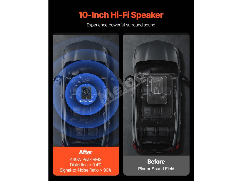 Aj pri vysokej hlasitosti zostáva zvuk jasný a čistý. Tento subwoofer pre nákladné vozidlo minimalizuje hluk v pozadí, vďaka čomu si môžete vychutnať vysoko verný priestorový zvuk na každej ceste.