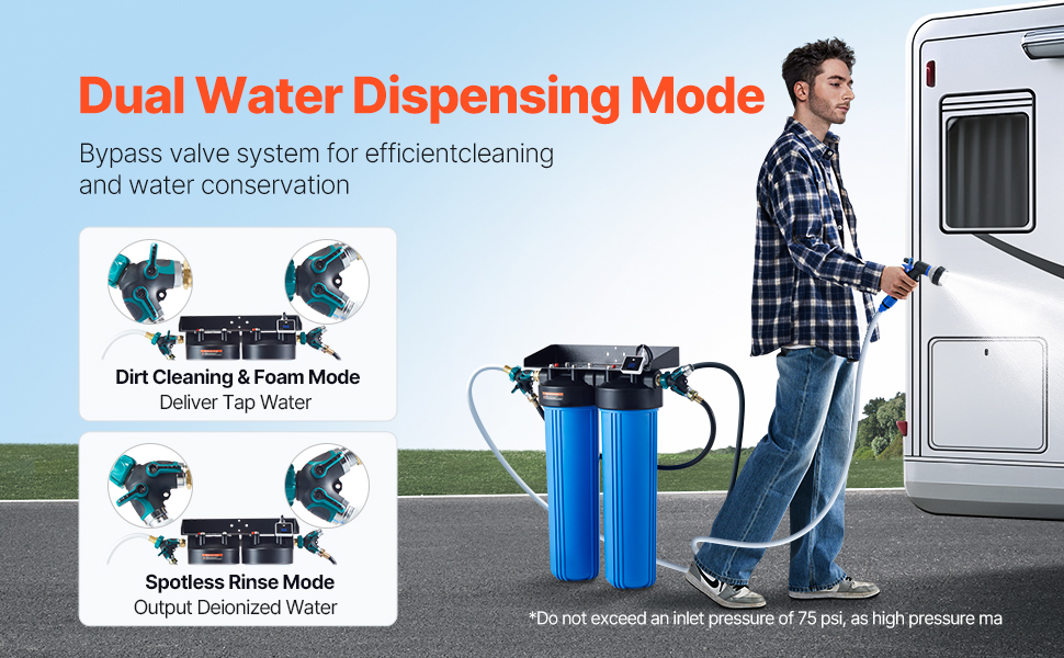 Tento systém s deionizovanou vodou je vhodný na domáce umývanie automobilov, zabraňuje vzniku škvŕn z tvrdej vody a zanecháva lesklý povrch bez šmúh. Je tiež skvelý na čistenie lodí, motocyklov, okien a solárnych panelov, pričom udržiava povrchy bez vodného kameňa.