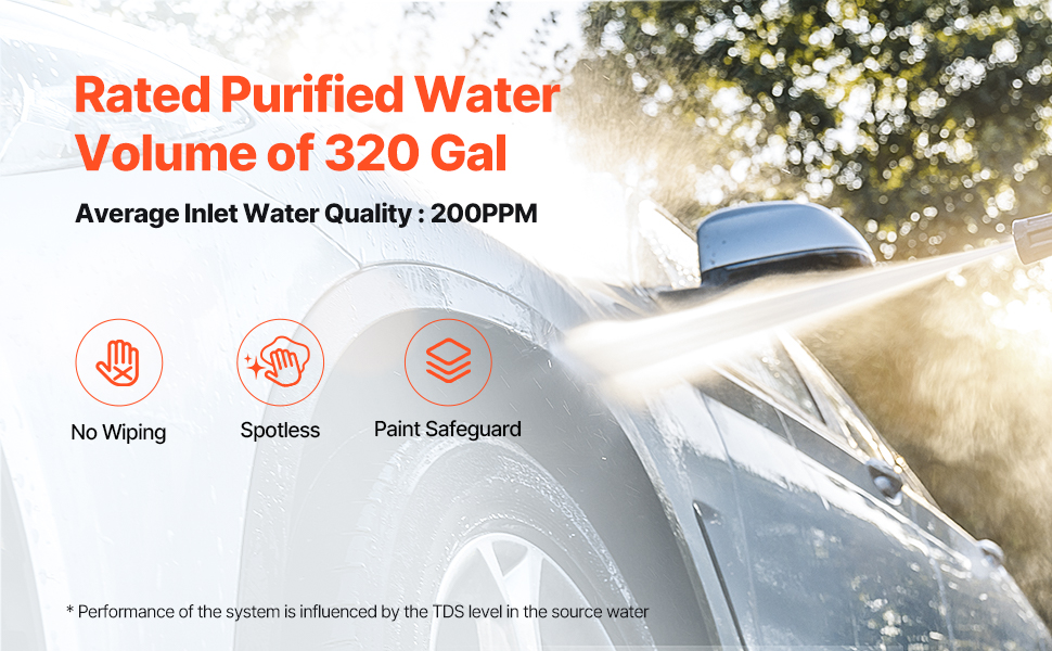 Systém umývania automobilov pracuje efektívne so stabilným výkonom vody, pričom poskytuje menovitý objem vody 320 galónov. Dodáva čistú deionizovanú vodu na umývanie bez škvŕn, čím minimalizuje potrebu stierania a zároveň chráni lak vozidla.