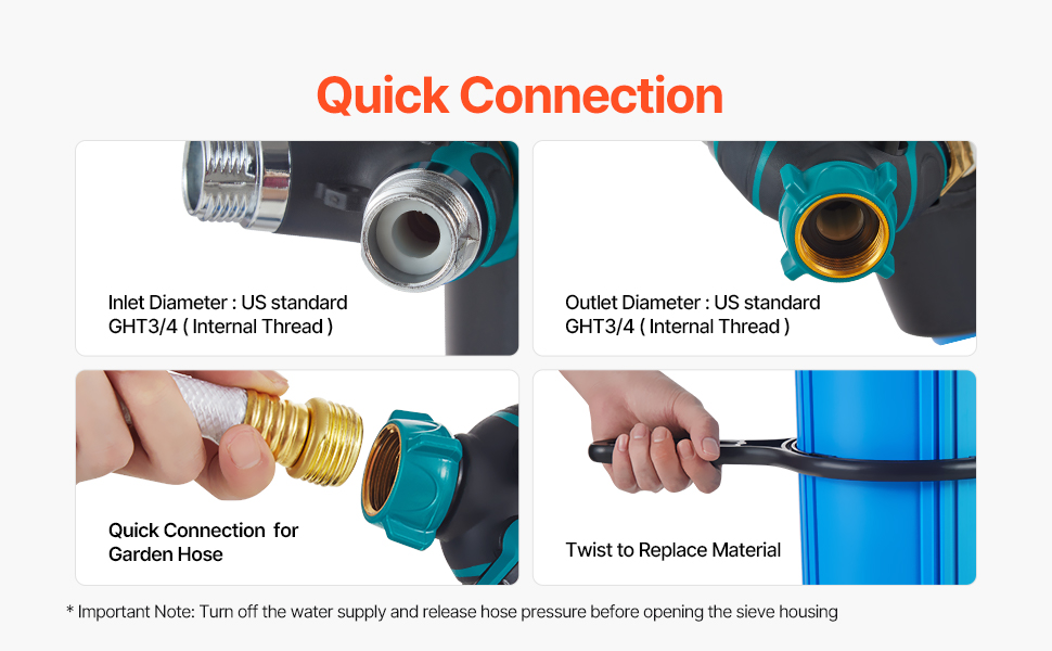 Zariadenie na umývanie auta s deionizovanou vodou bez škvŕn má štandardnú veľkosť prívodu a výstupu, ktorý má rýchle pripojenie so záhradnou hadicou. Na jednoduchú výmenu filtra stačí jednoducho pootočiť nádržku.