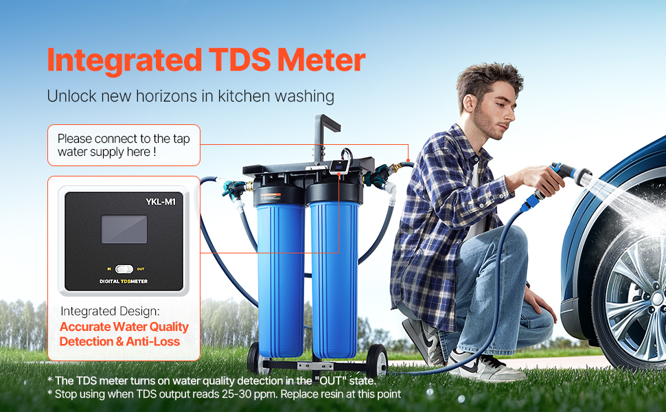 Deionizér vody na umývanie áut s tds meračom, filter, 2 výstupy
