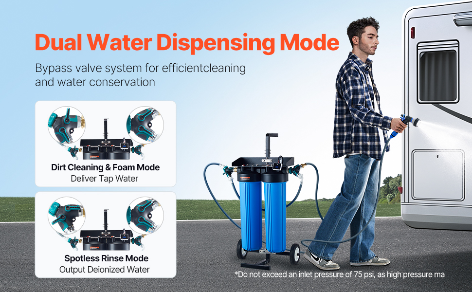 Tento systém s deionizovanou vodou je vhodný na domáce umývanie automobilov, zabraňuje vzniku škvŕn z tvrdej vody a zanecháva lesklý povrch bez šmúh. Je tiež skvelý na čistenie lodí, motocyklov, okien a solárnych panelov, pričom udržiava povrchy bez vodného kameňa.