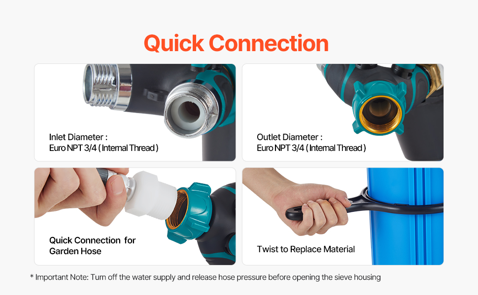 Zariadenie na umývanie auta s deionizovanou vodou bez škvŕn má štandardnú veľkosť prívodu a výstupu, ktorý má rýchle pripojenie so záhradnou hadicou. Na jednoduchú výmenu filtra stačí jednoducho pootočiť nádržku.