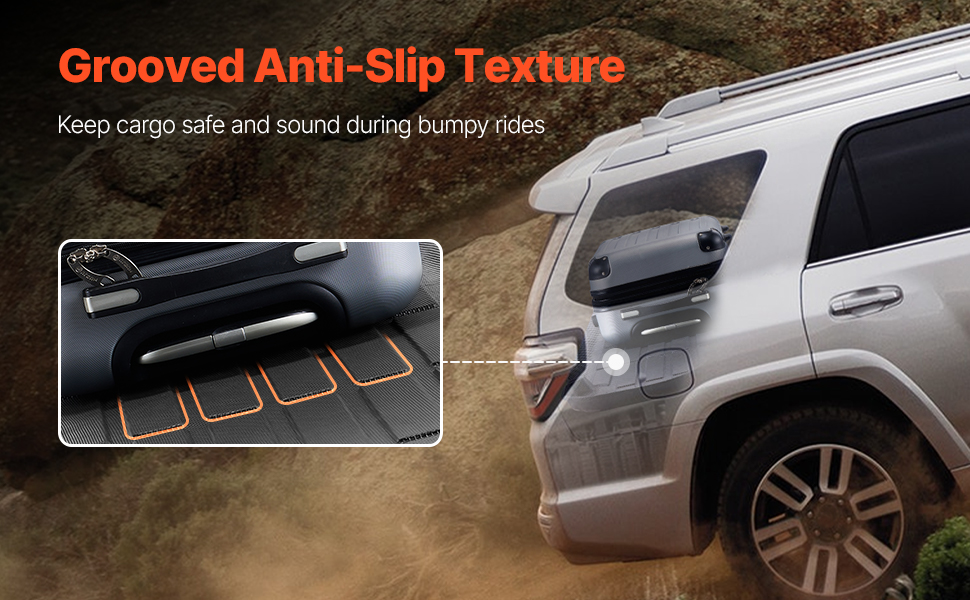 Vďaka protišmykovému povrchu udrží naša rohož do kufra váš náklad na mieste aj pri ostrých zákrutách alebo na hrboľatých cestách. Váš náklad zostane v bezpečí, čím sa znižuje riziko poškodenia.