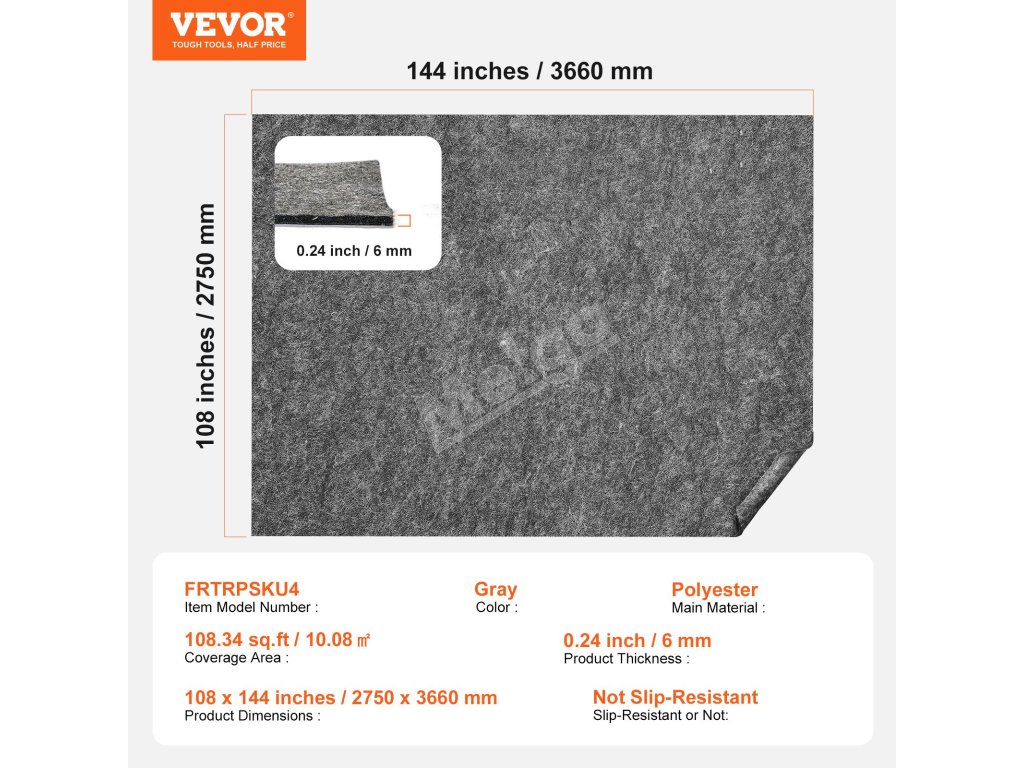 Podložka pod koberec 9'×12' 1/4" polyesterová plsť sivá bez protisklzu