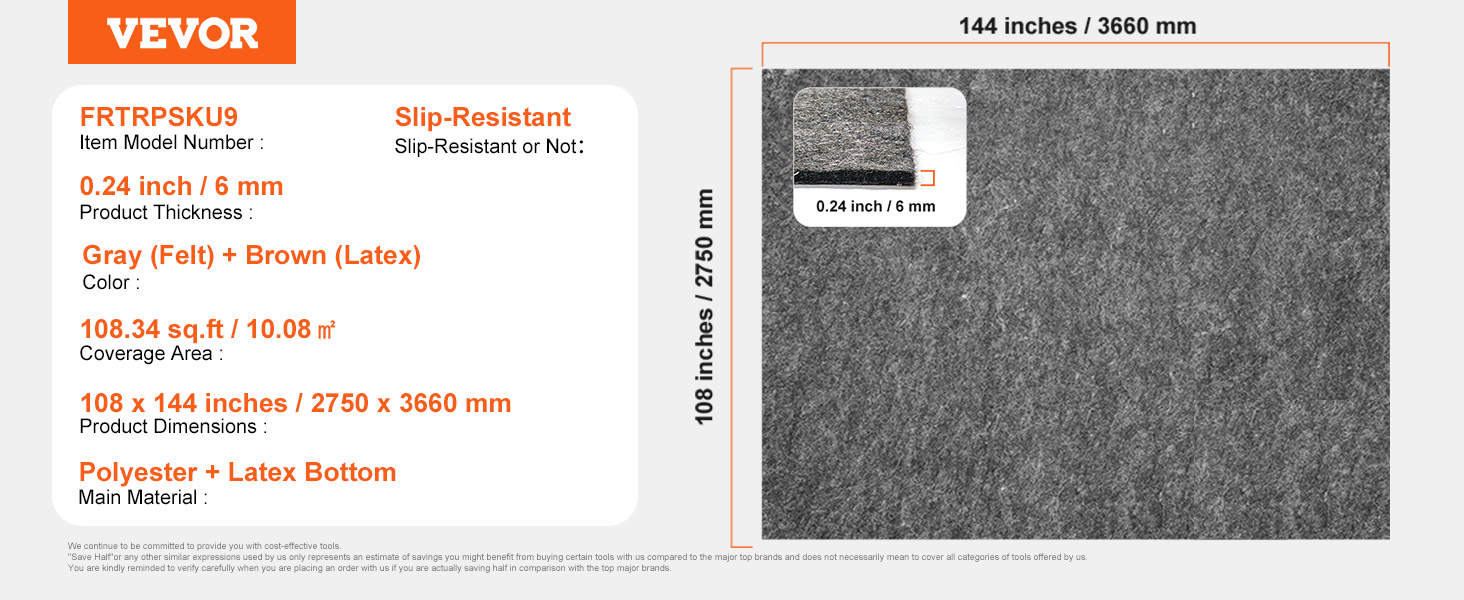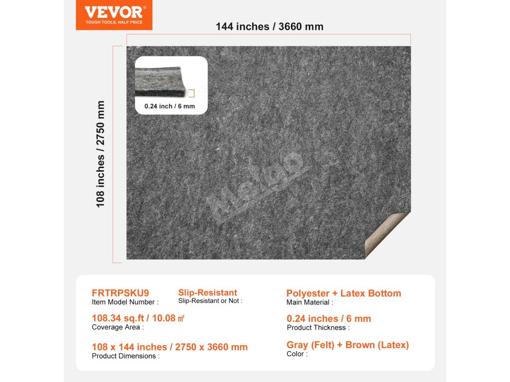 Podložka pod koberec protišmyková 9'×12' 1/4" polyester+latex