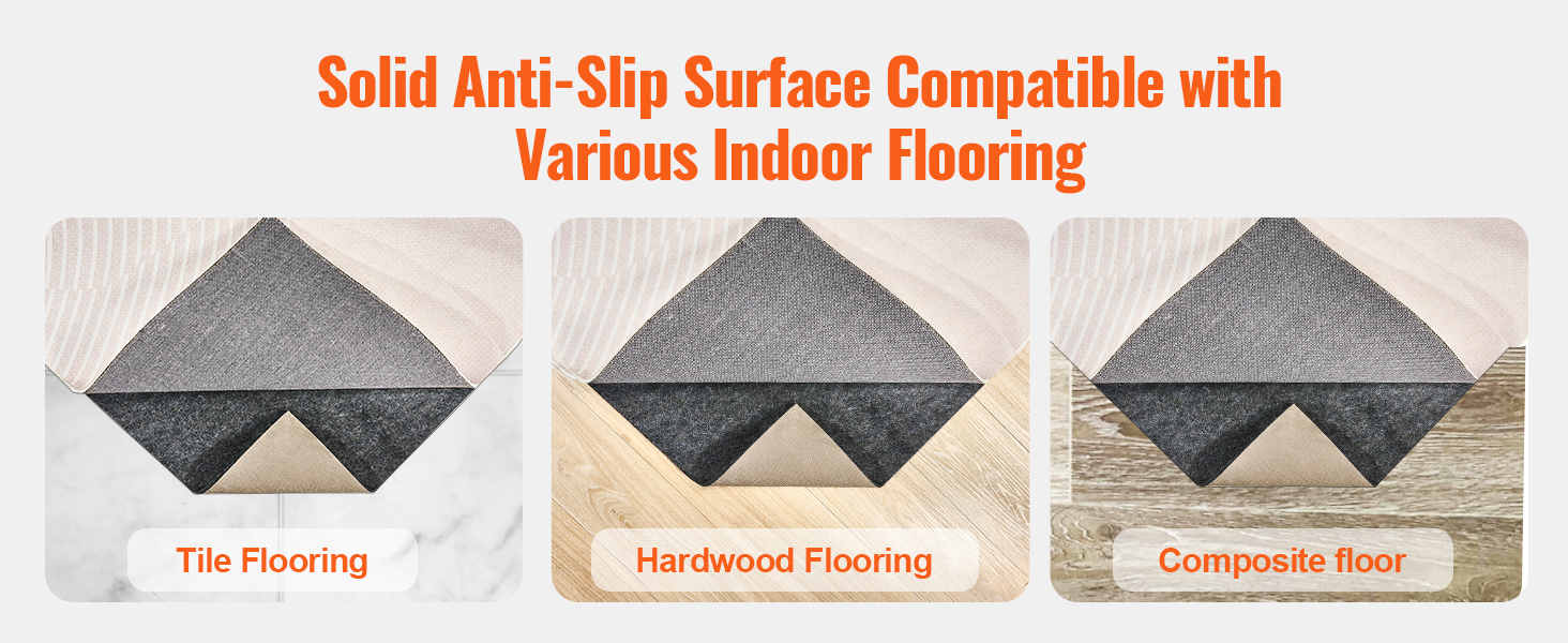 Vhodný na rôzne typy podláh - dlaždice, tvrdé drevo alebo laminát - silný protišmykový dizajn zaručuje, že váš koberec zostane stabilný v akomkoľvek interiéri.