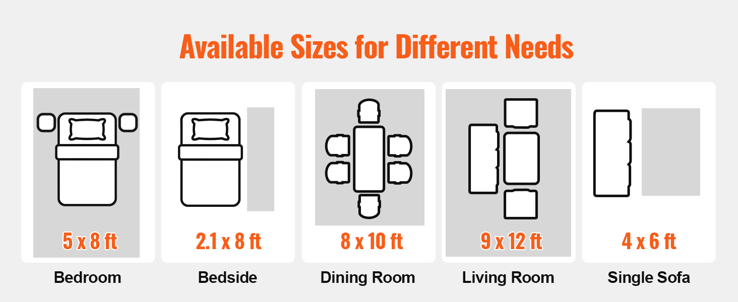 Tento koberec sa dodáva v rôznych veľkostiach a je vhodný do spální, jedální, obývacích izieb a iných priestorov. Bez ohľadu na typ podlahy poskytuje pohodlný a stabilný zážitok a ľahko splní vaše domáce potreby.