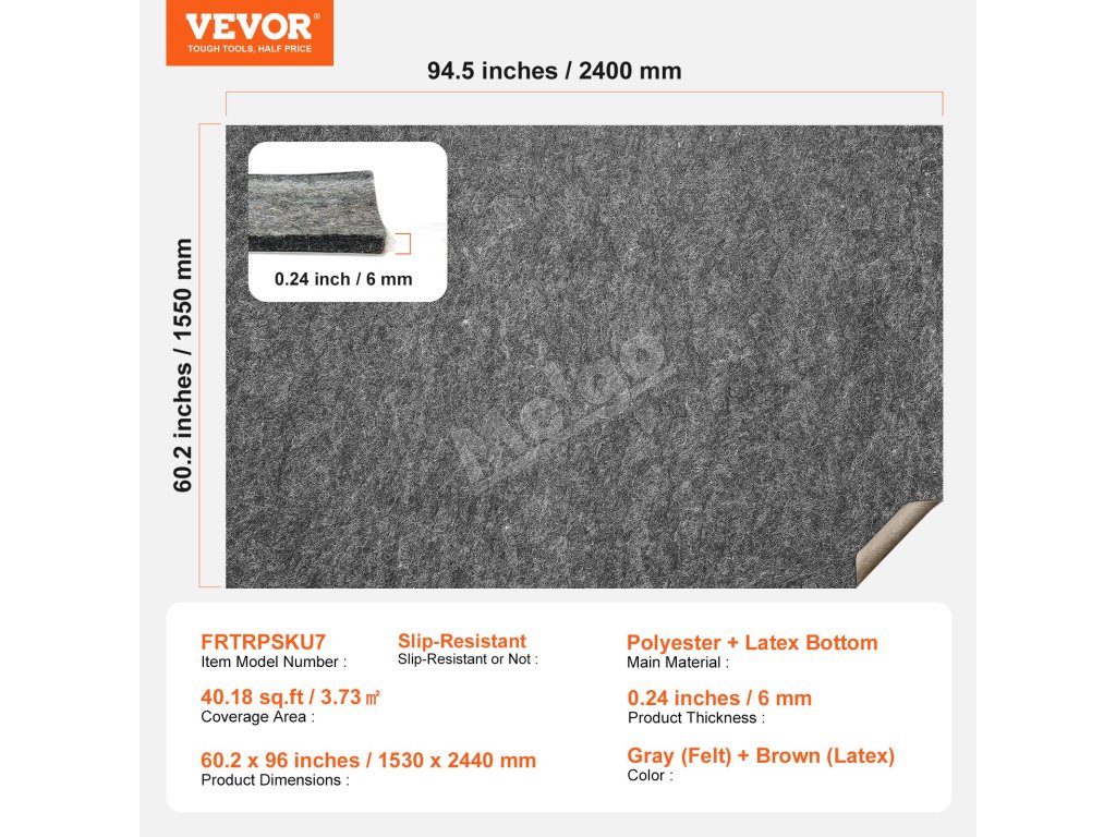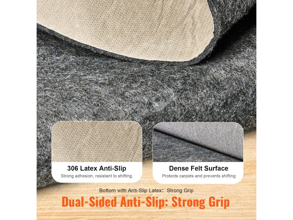 Podložka proti šmyku pod koberec 5'×8' 1/4" dvojitá plsť+latex šedá