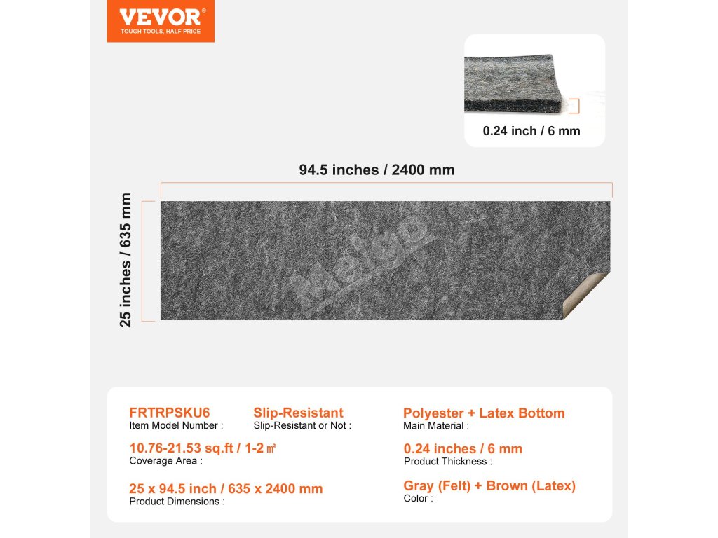 Protišmyková podložka pod koberec 2'×8', 1/4" hrubá, filc+latex, 1-2㎡