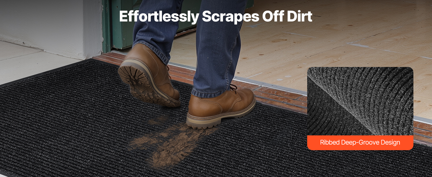 Koberec na dvere s dlhým pruhovaným dizajnom s hlbokými drážkami je vysoko odolný proti opotrebovaniu a poškriabaniu. Účinne odstraňuje nečistoty a prach z obuvi, čím udržiava podlahy čisté a suché.